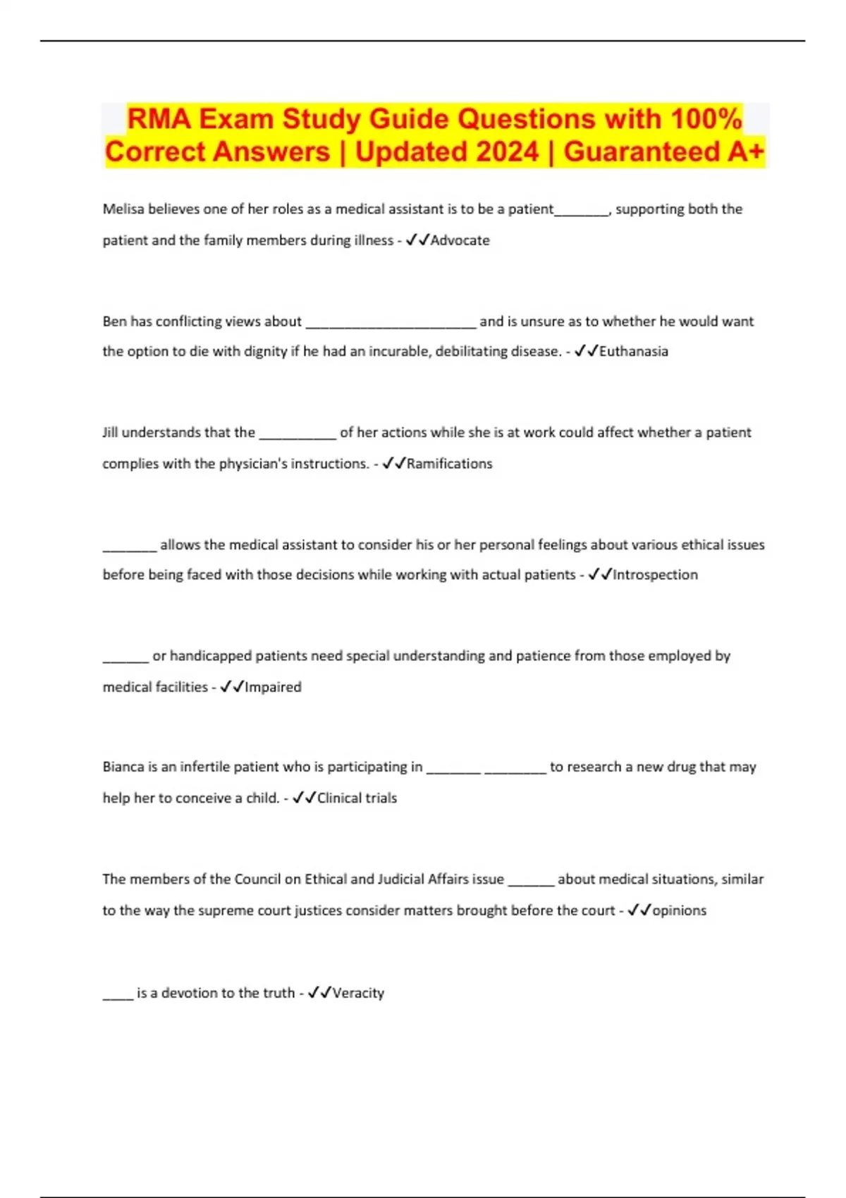 RMA Exam Study Guide Questions with 100% Correct Answers | Updated 2024 | Guaranteed A+