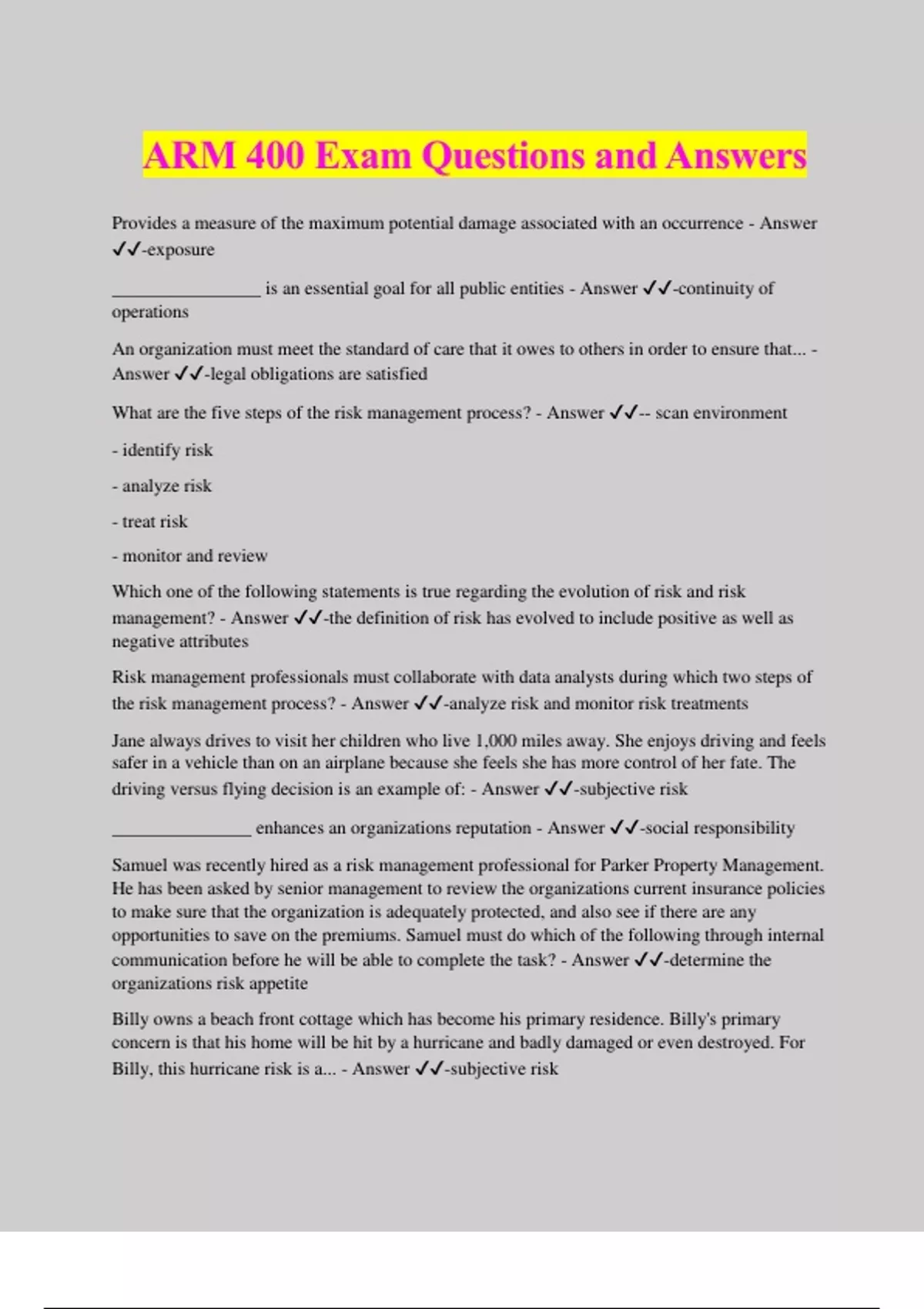 ARM 400 Exam Questions and Answers 2024 Graded A