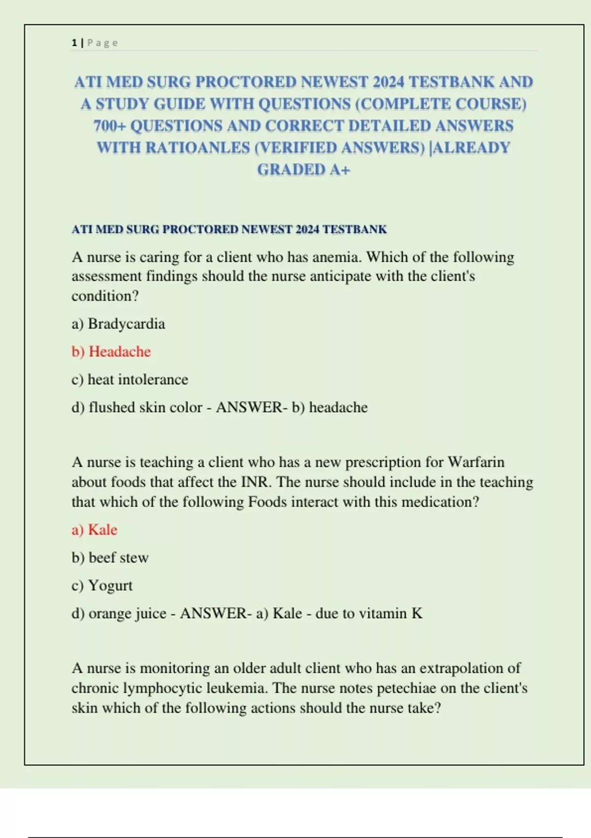 ATI MED SURG PROCTORED NEWEST 2024 TESTBANK AND A STUDY GUIDE WITH QUESTIONS (COMPLETE COURSE) 700+ QUESTIONS AND CORRECT DETAILED ANSWERS WITH RATIOANLES (VERIFIED ANSWERS) |ALREADY GRADED A+