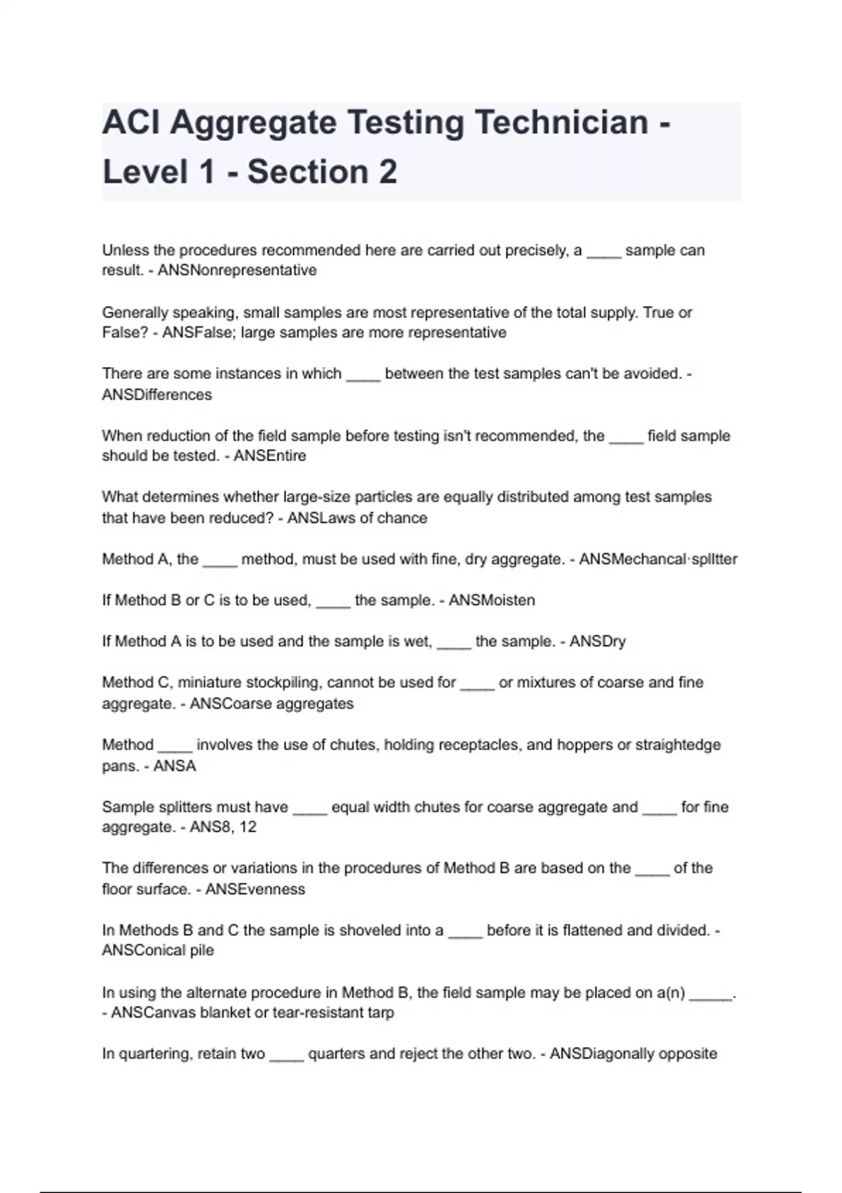 ACI Aggregate Testing Technician - Level 1 - Section 2 graded A+ 2024/2025