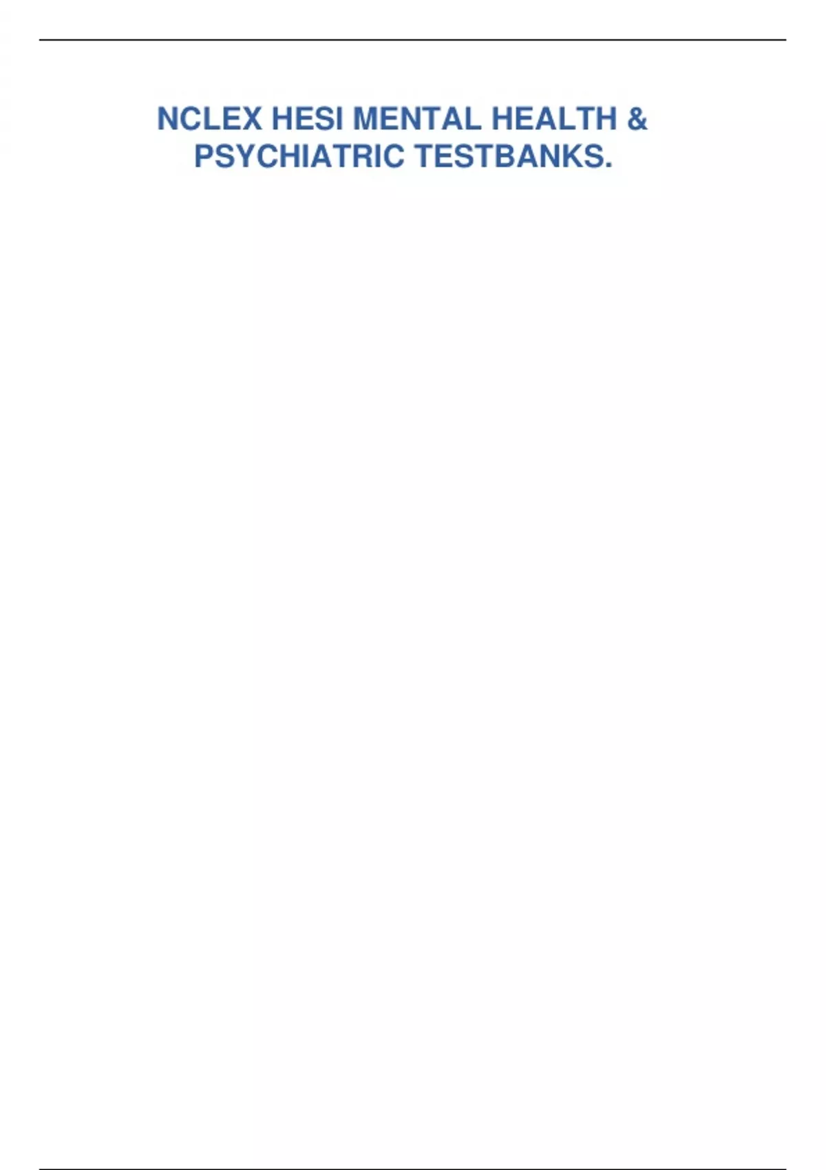 NCLEX HESI MENTAL HEALTH PSYCHIATRIC TESTBANK