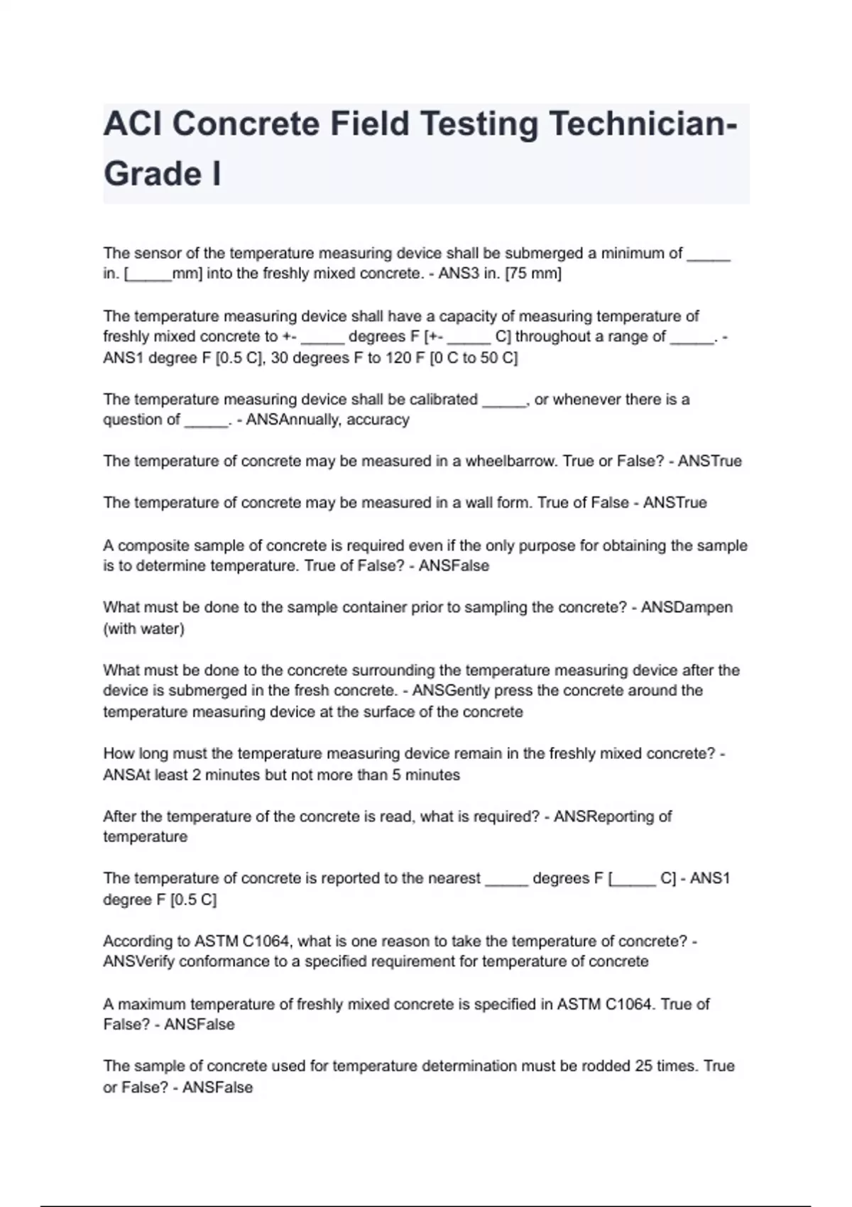 ACI Concrete Field Testing Technician- Grade I graded A+ 2024/2025