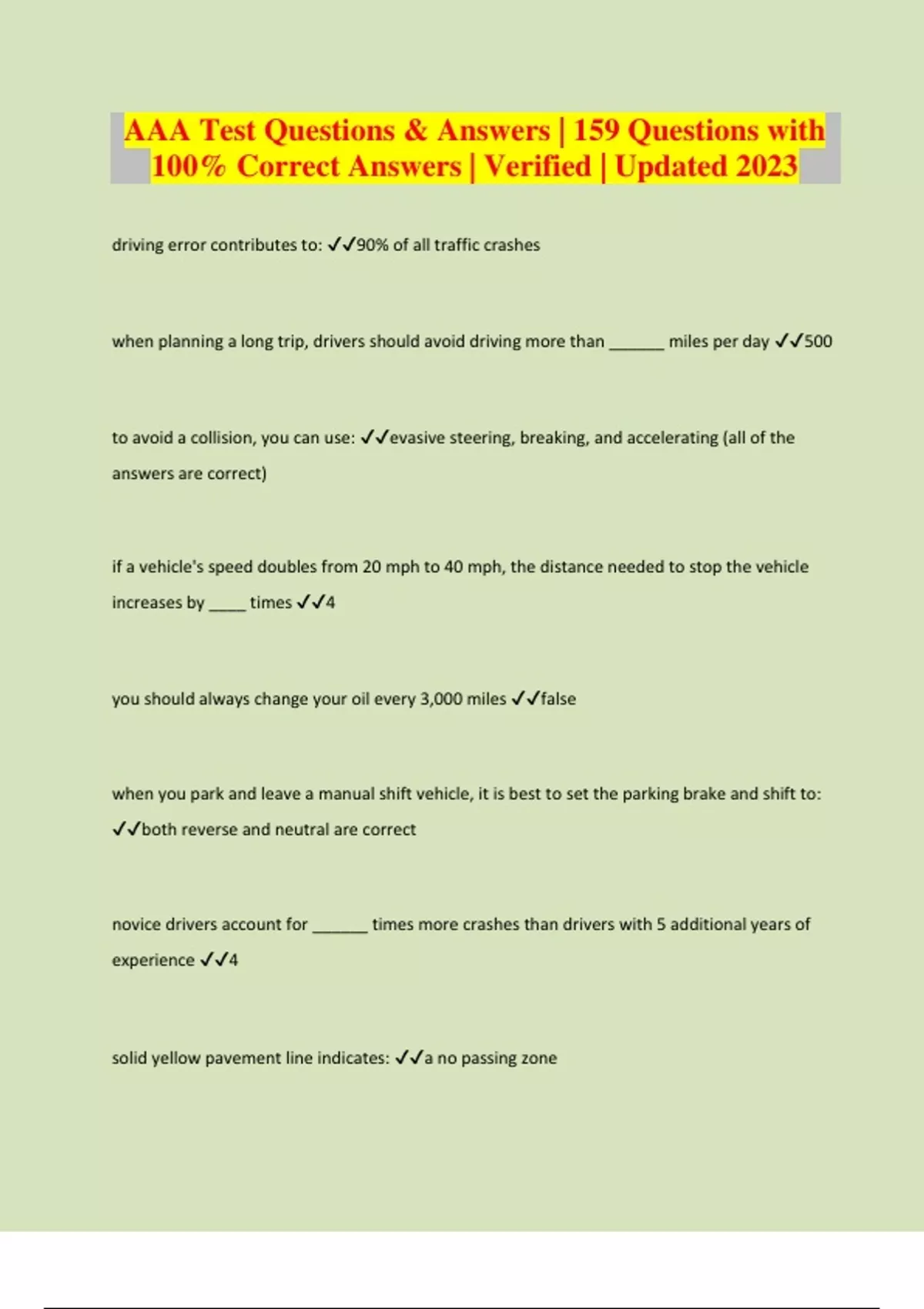 AAA Test Questions & Answers | 159 Questions with 100% Correct Answers | Verified | Updated 2023