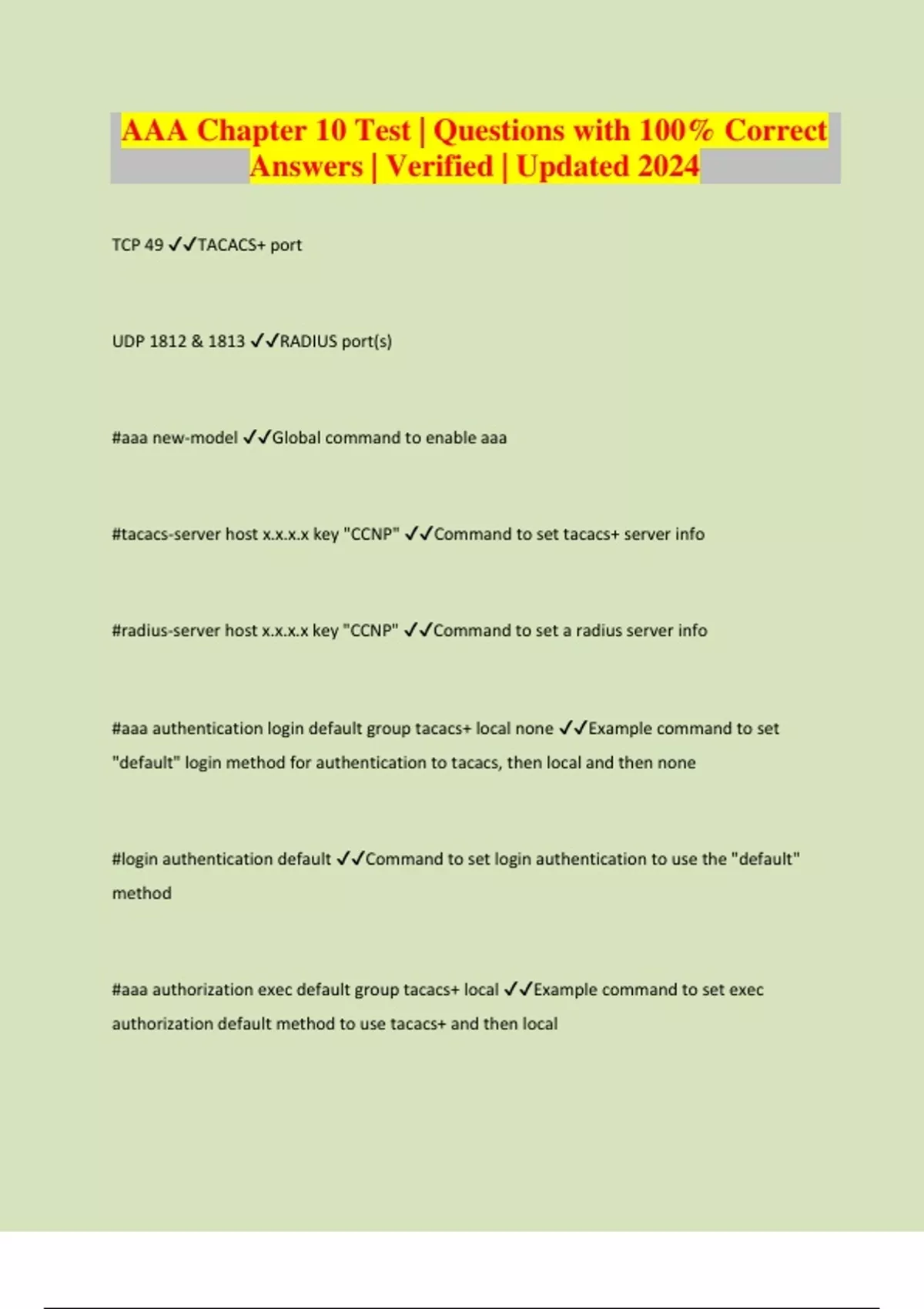 AAA Chapter 10 Test | Questions with 100% Correct Answers | Verified | Updated 2024