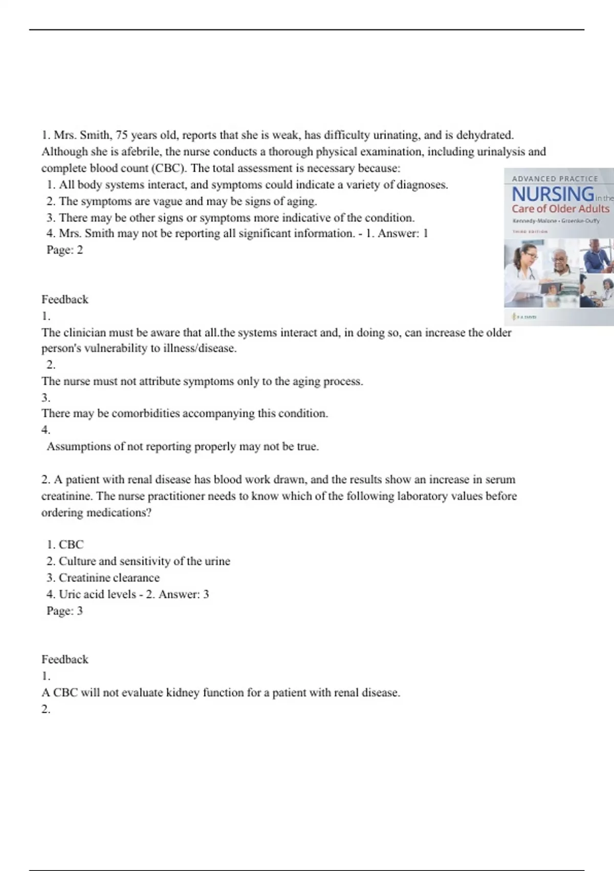 Test Bank For Advanced Practice Nursing in the Care of Older Adults 3rd Edition by Malone Kennedy | | 9781719645256 | Chapter 1-23 |All Chapters with Answers and Rationals