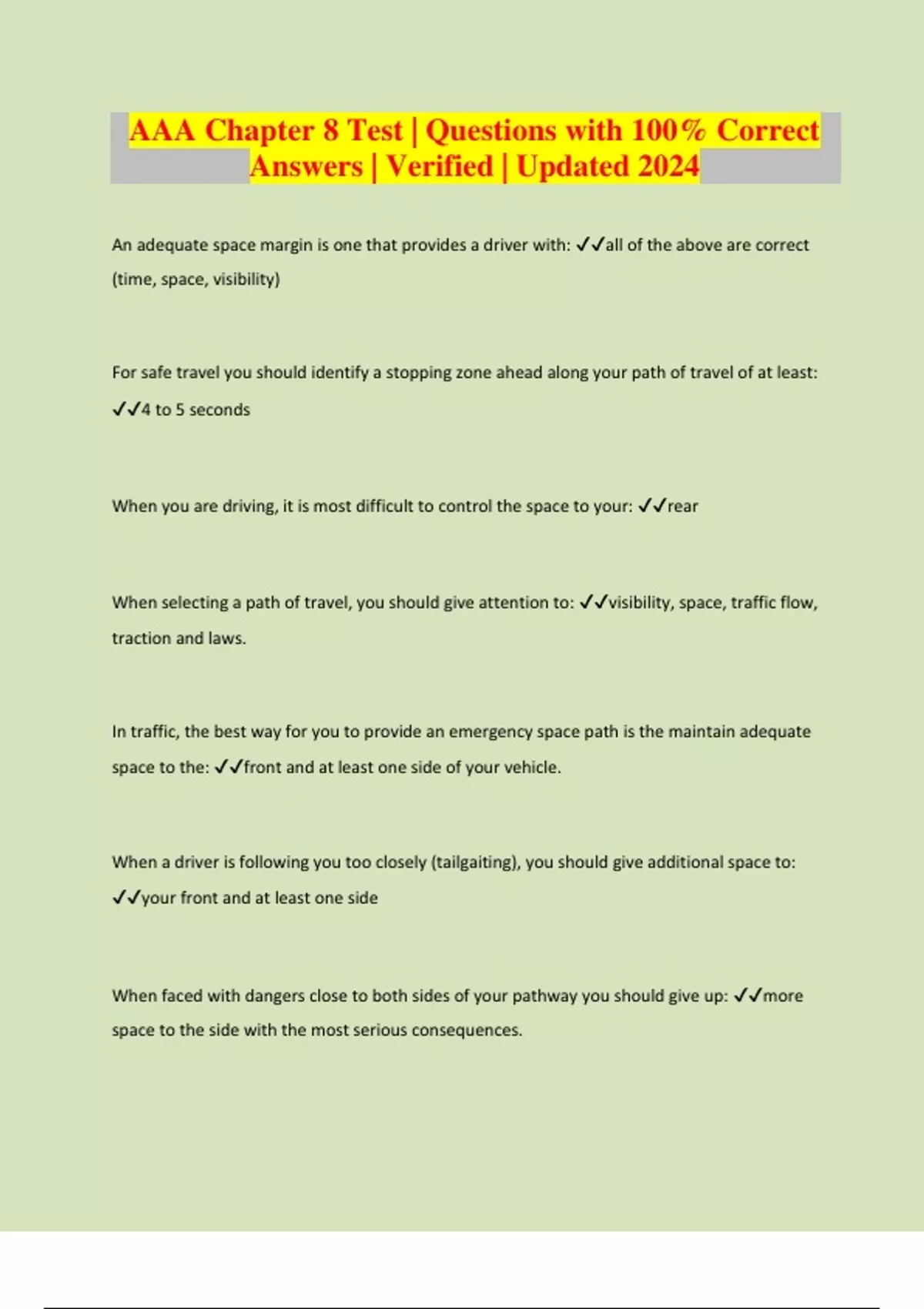 AAA Chapter 8 Test | Questions with 100% Correct Answers | Verified | Updated 2024