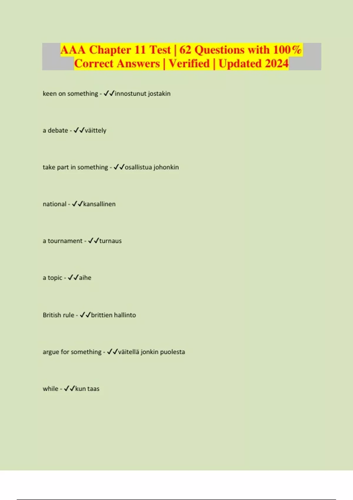 AAA Chapter 11 Test | 62 Questions with 100% Correct Answers | Verified | Updated 2024