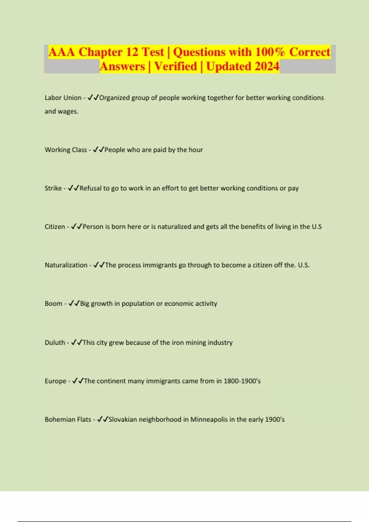 AAA Chapter 12 Test | Questions with 100% Correct Answers | Verified | Updated 2024