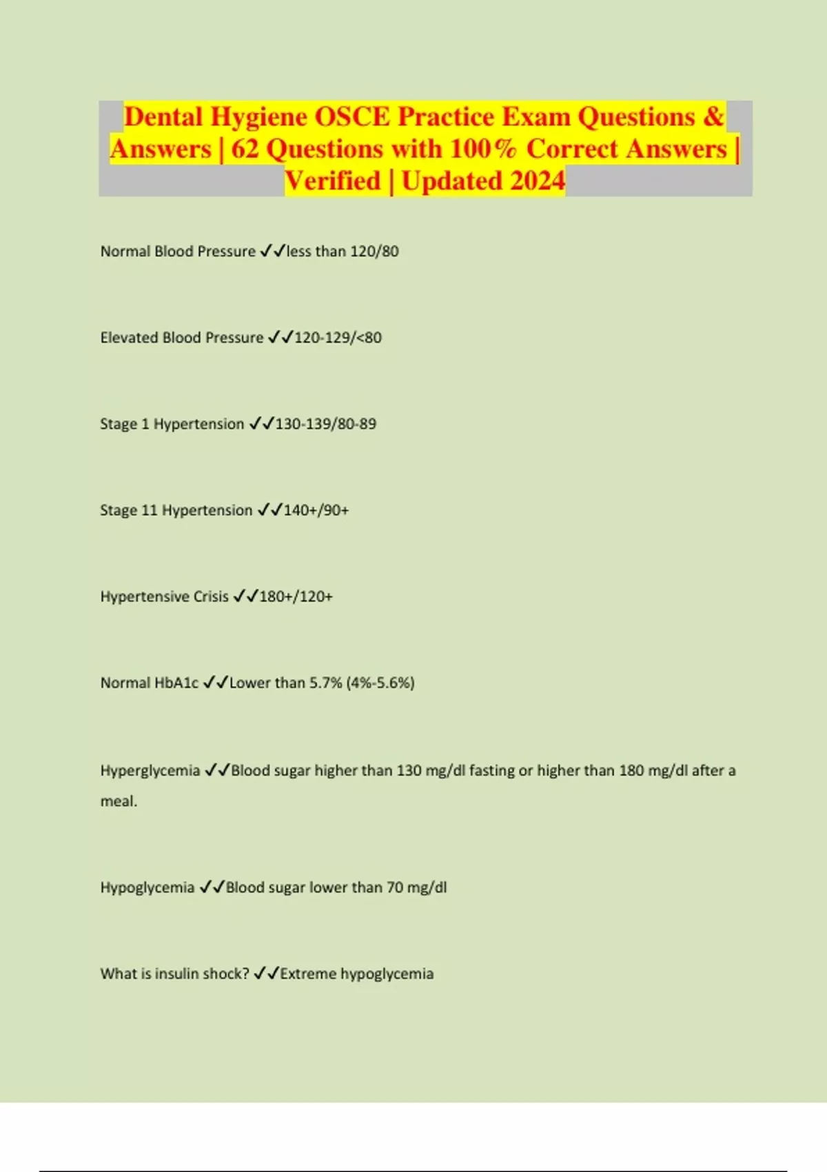 Dental Hygiene OSCE Practice Exam Questions & Answers | 62 Questions with 100% Correct Answers | Verified | Updated 2024