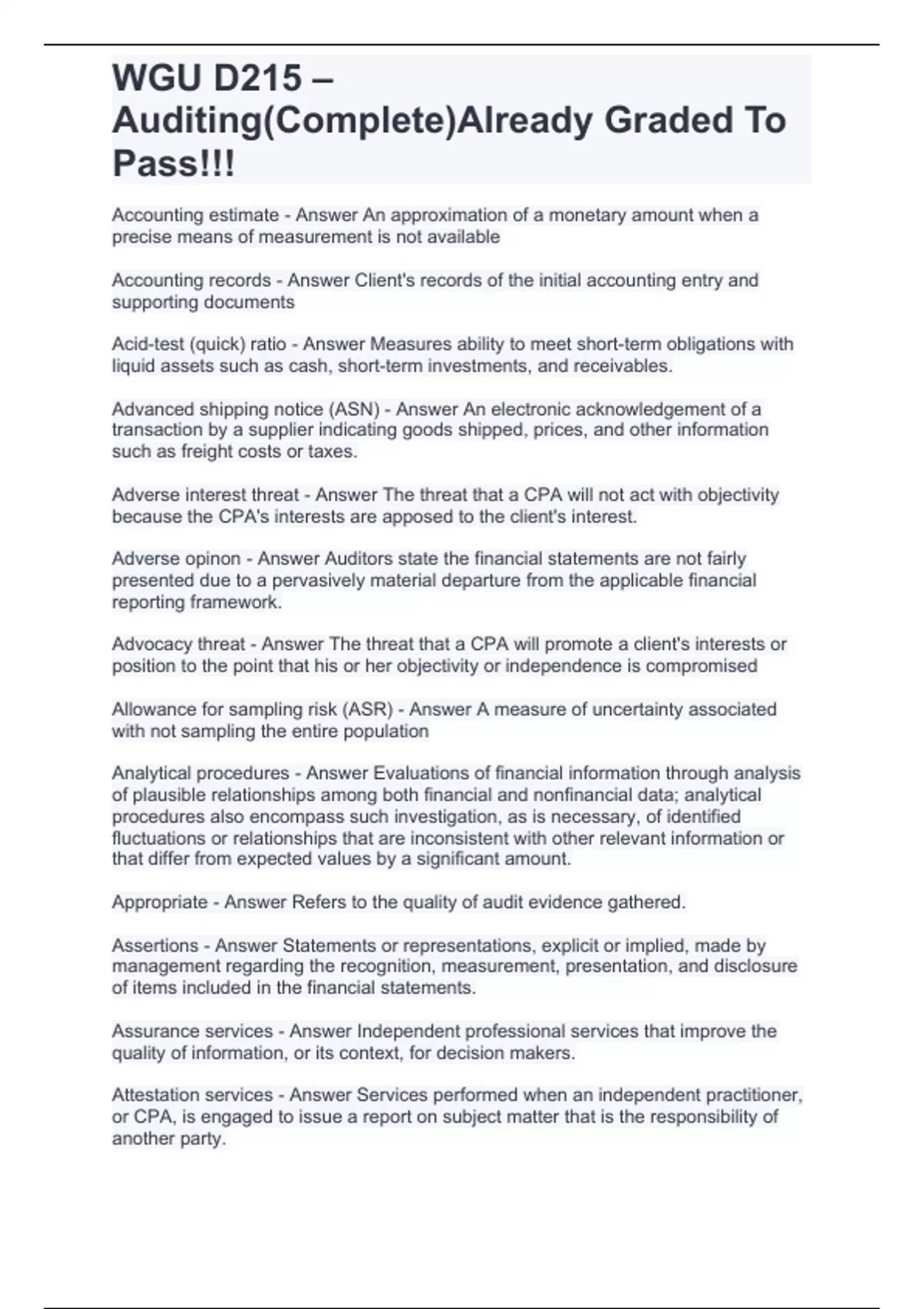 WGU D215 – Auditing(Complete)Already Graded To Pass!!!