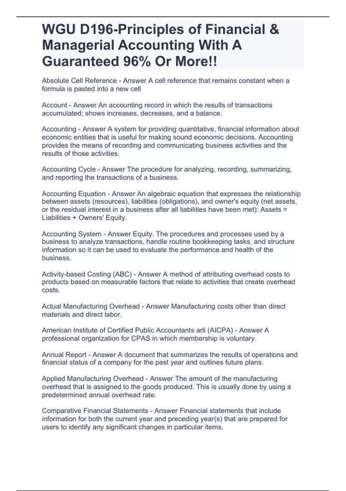 WGU D196-Principles of Financial & Managerial Accounting With A Guaranteed 96% Or More!!.