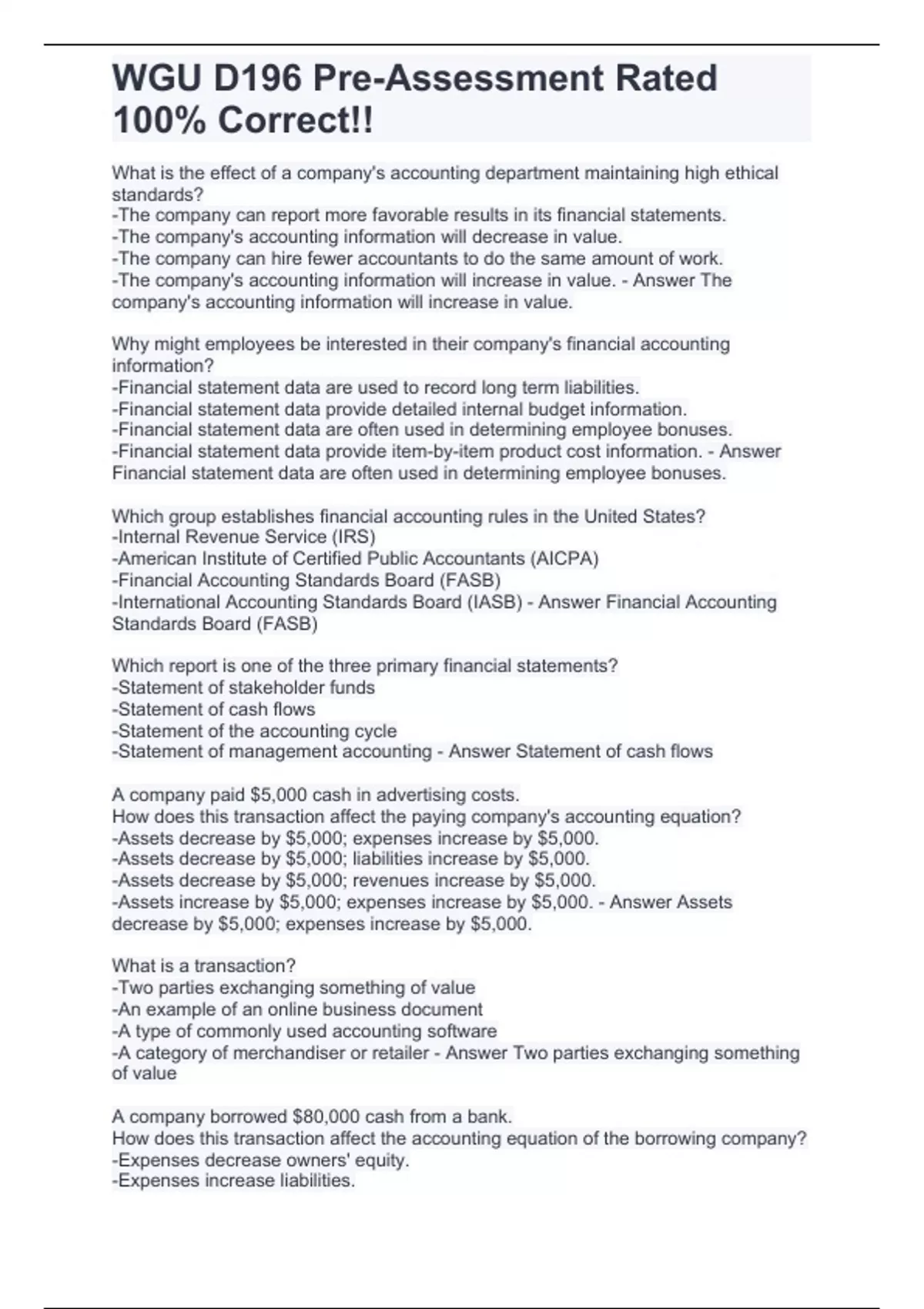 WGU D196 Pre-Assessment Rated 100% Correct!!