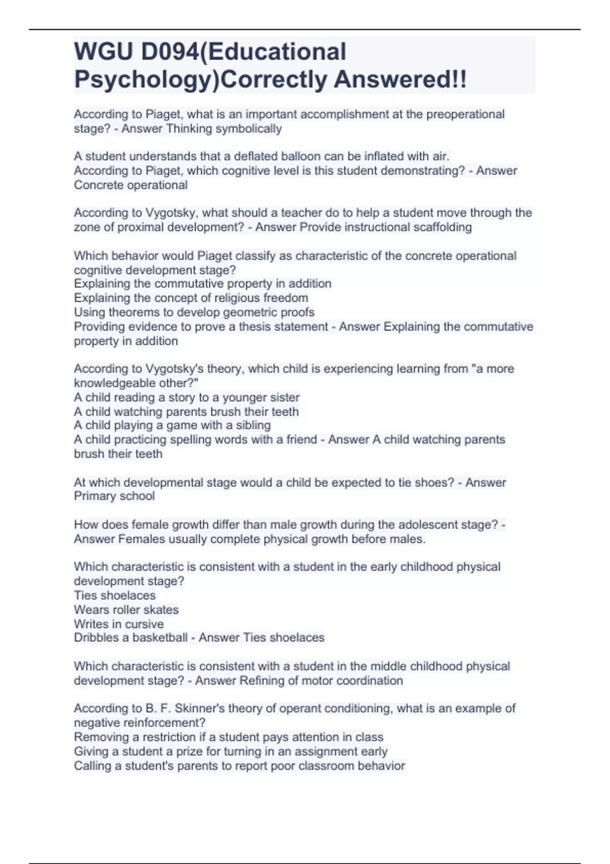 wgu d094educational psychologycorrectly answered