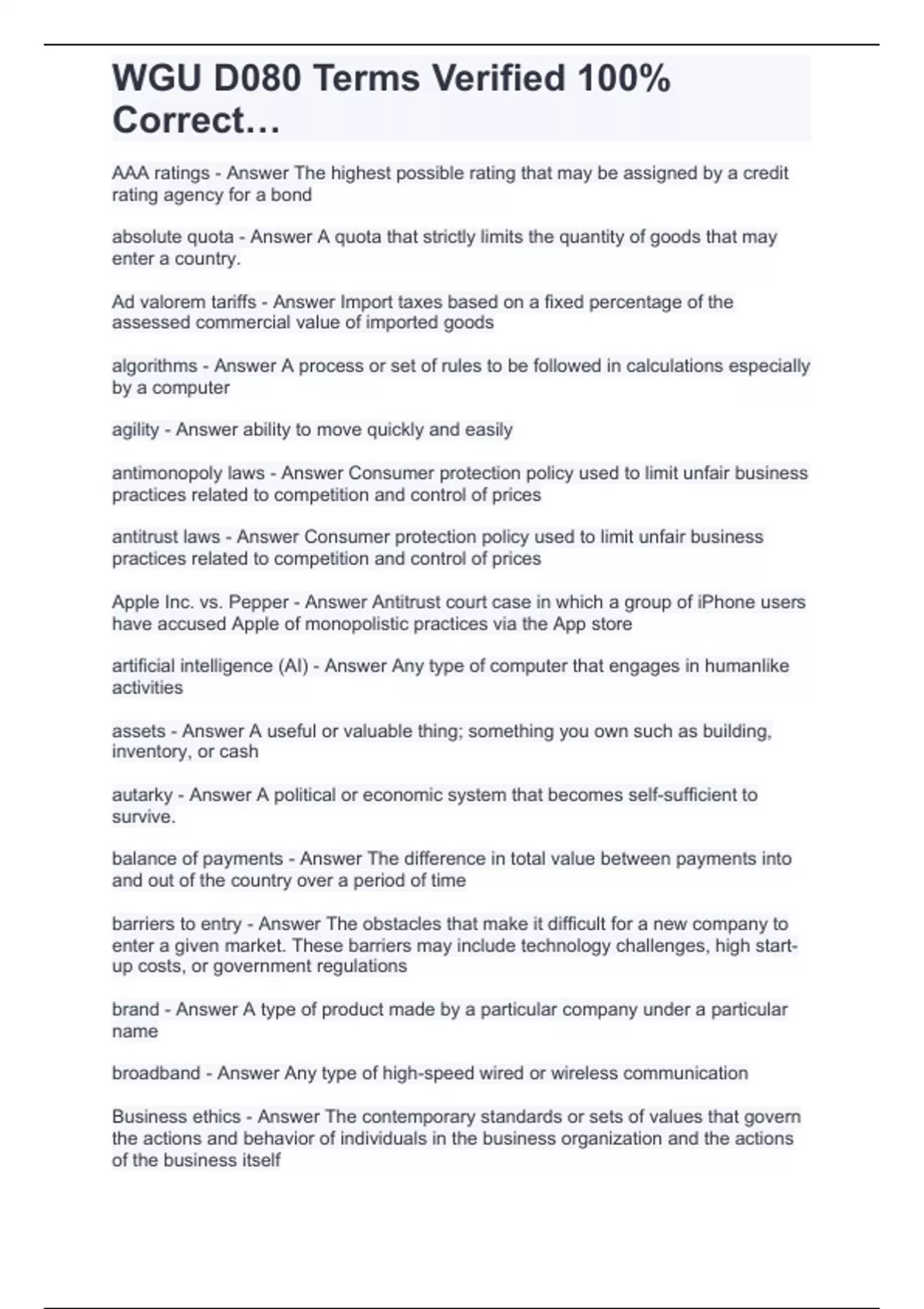 wgu d080 terms verified 100 correct