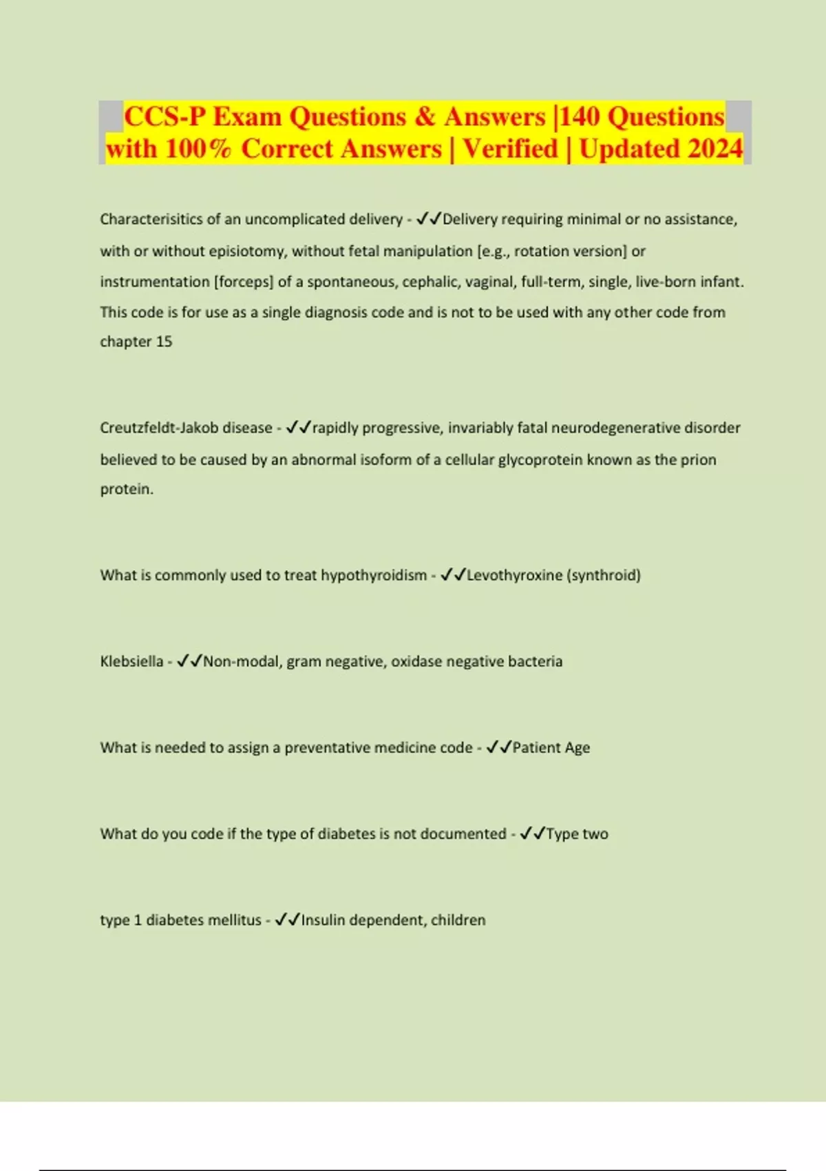 CCS-P Exam Questions & Answers |140 Questions with 100% Correct Answers | Verified | Updated 2024
