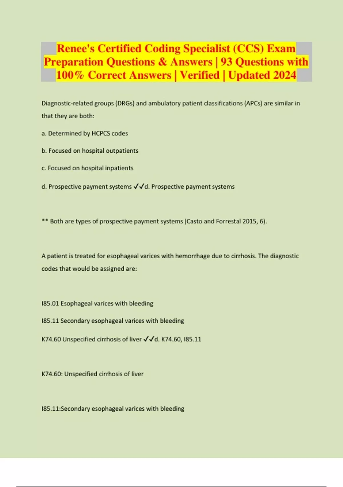 Renee's Certified Coding Specialist (CCS) Exam Preparation Questions & Answers | 93 Questions with 100% Correct Answers | Verified | Updated 2024