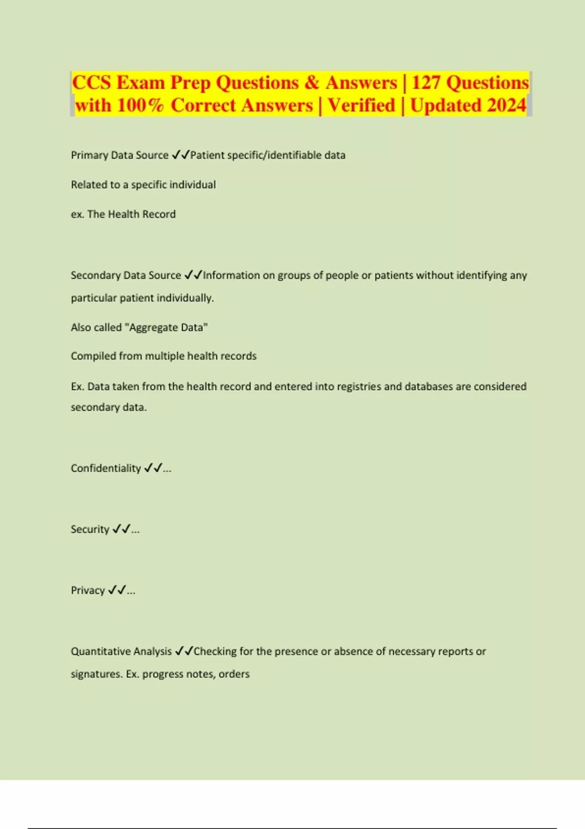 CCS Exam Prep Questions & Answers | 127 Questions with 100% Correct Answers | Verified | Updated 2024