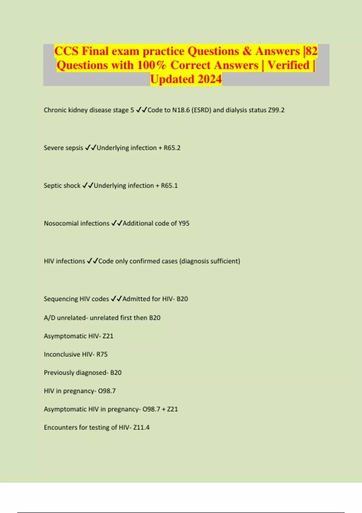CCS Final exam practice Questions & Answers |82 Questions with 100% Correct Answers | Verified | Updated 2024