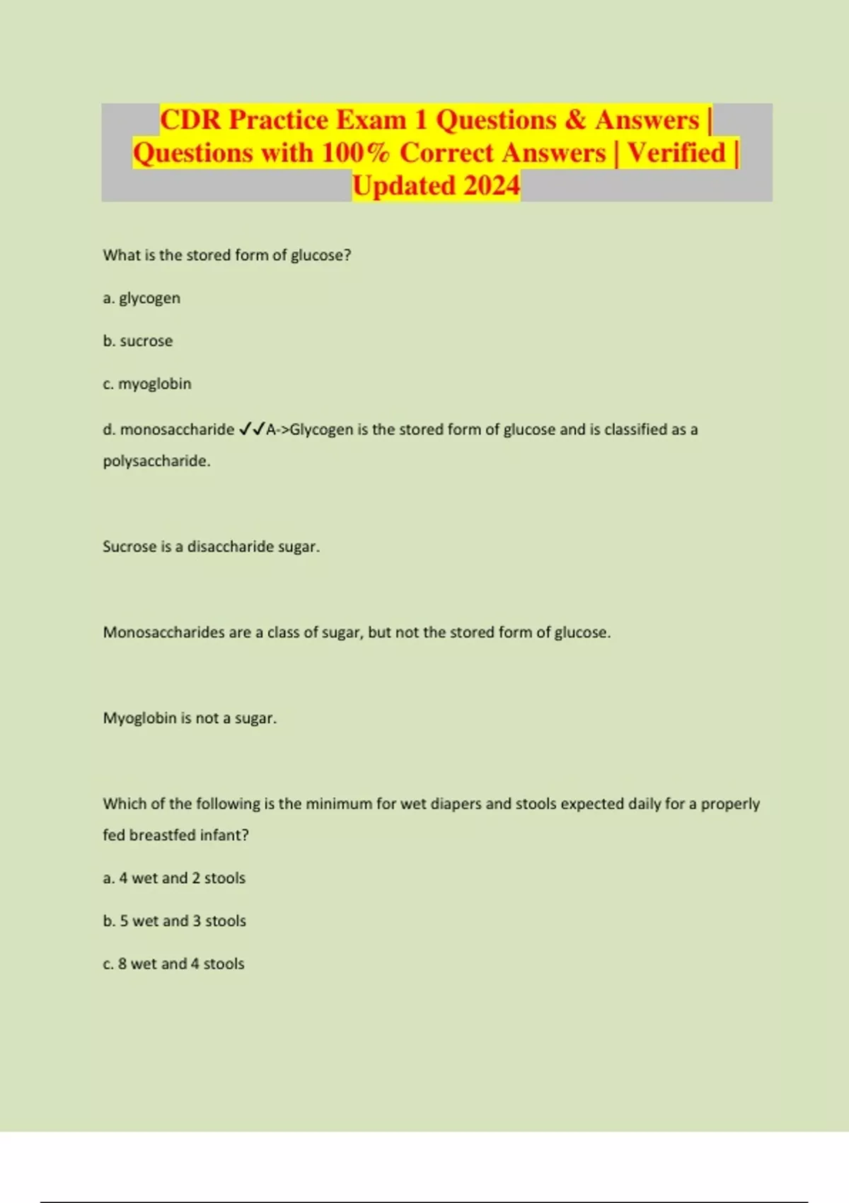 CDR Practice Exam 1 Questions & Answers | Questions with 100% Correct Answers | Verified | Updated 2024