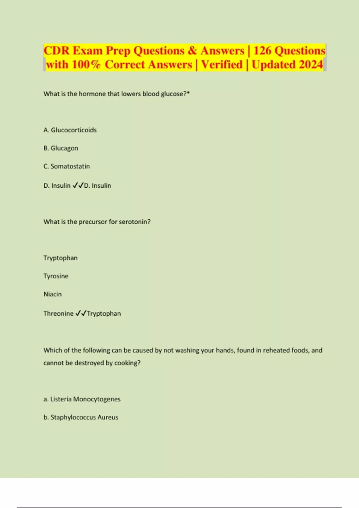 CDR Exam Prep Questions & Answers | 126 Questions with 100% Correct Answers | Verified | Updated 2024
