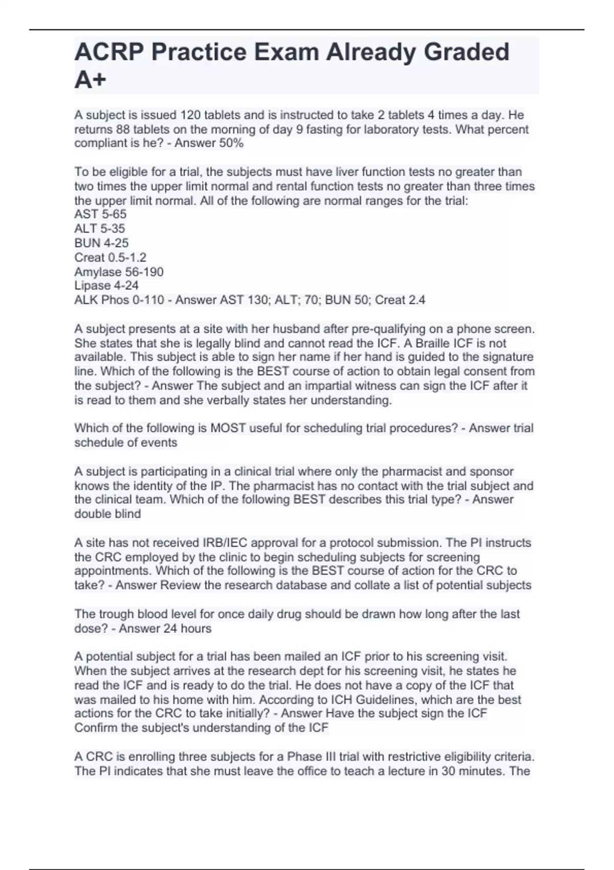 acrp practice exam already graded a