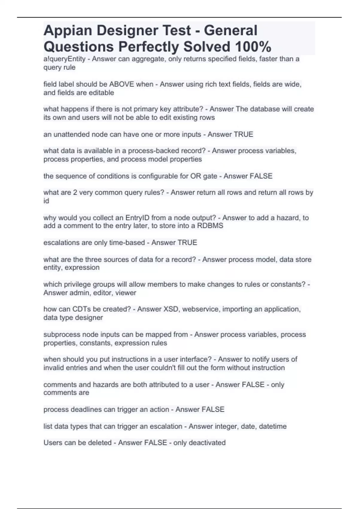 Appian Designer Test - General Questions Perfectly Solved 100%.