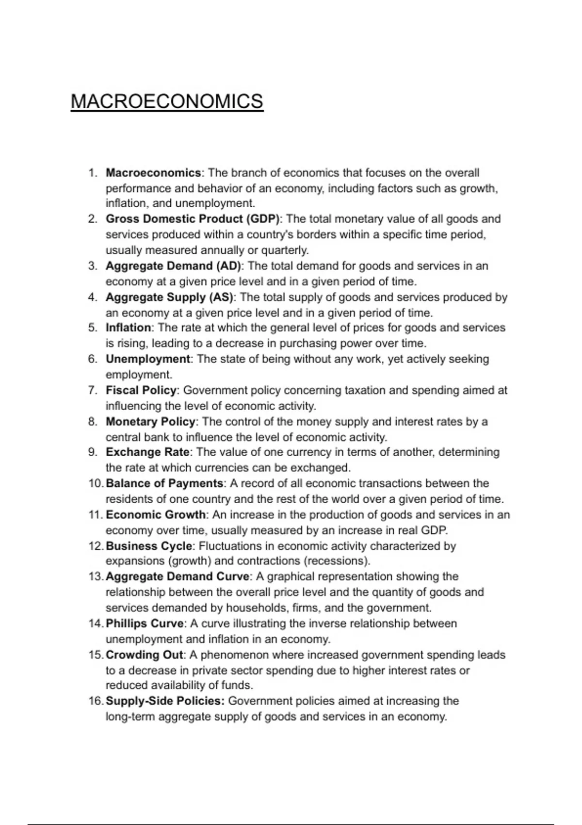 1. Macroeconomics: The branch of economics that focuses on the overall