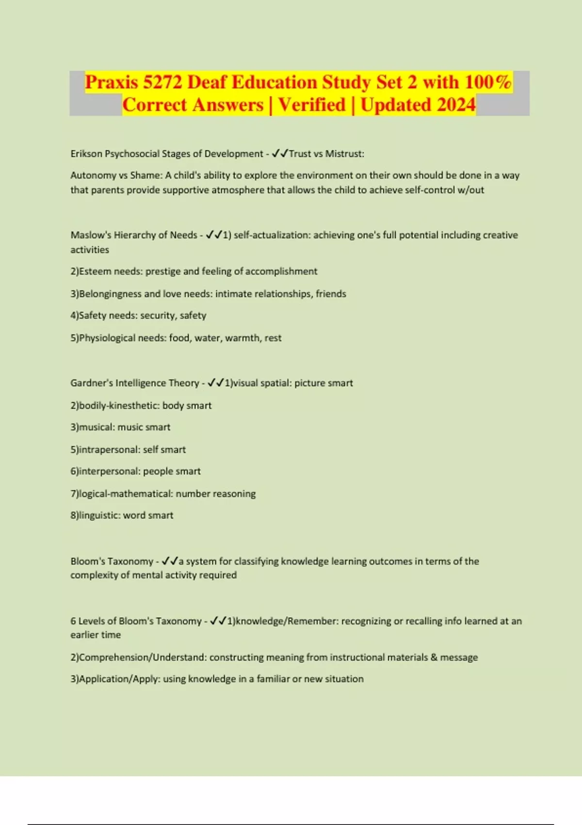 Praxis 5272 Deaf Education Study Set 2 with 100% Correct Answers | Verified | Updated 2024