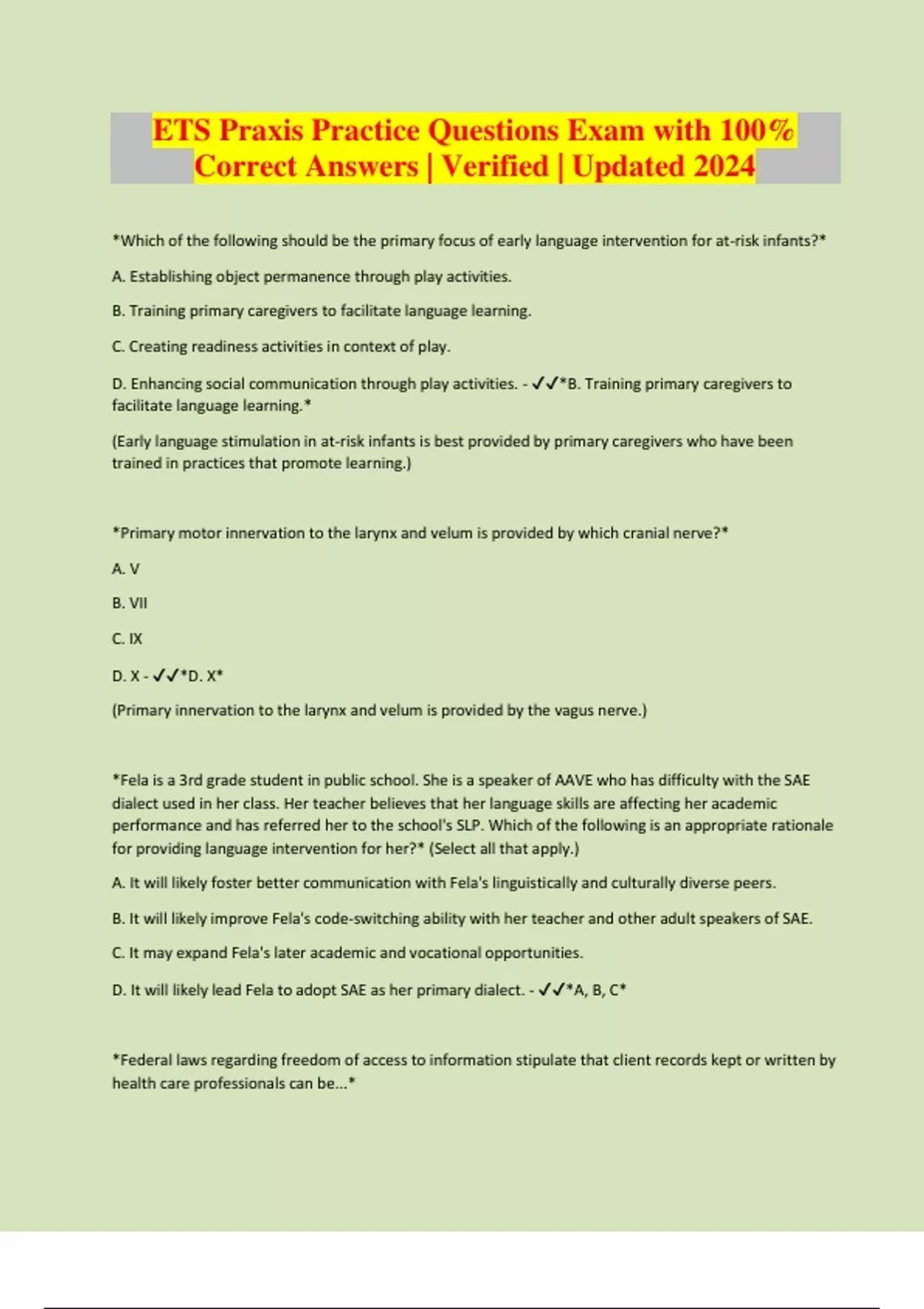 ETS Praxis Practice Questions Exam with 100% Correct Answers | Verified | Updated 2024