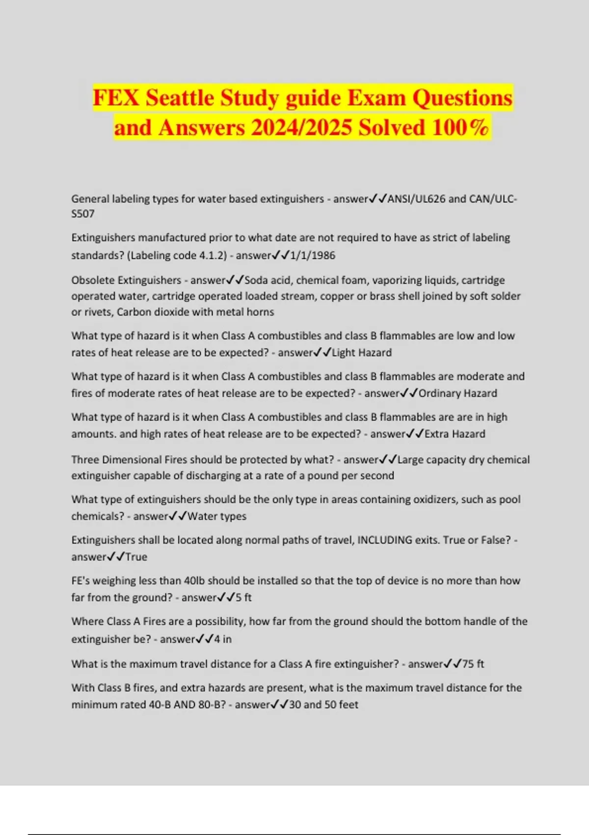 FEX Seattle Study guide Exam Questions and Answers 2024/2025 Solved 100%