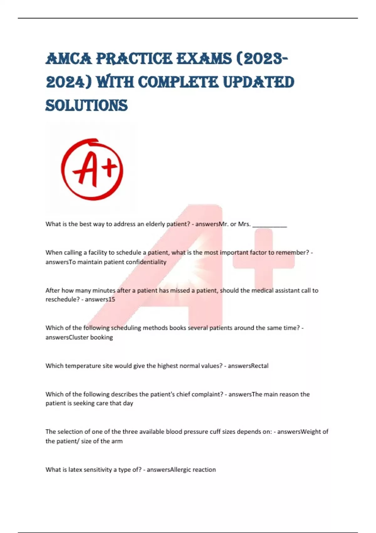 AMCA practice exams (2023- 2024) with complete updated solutions