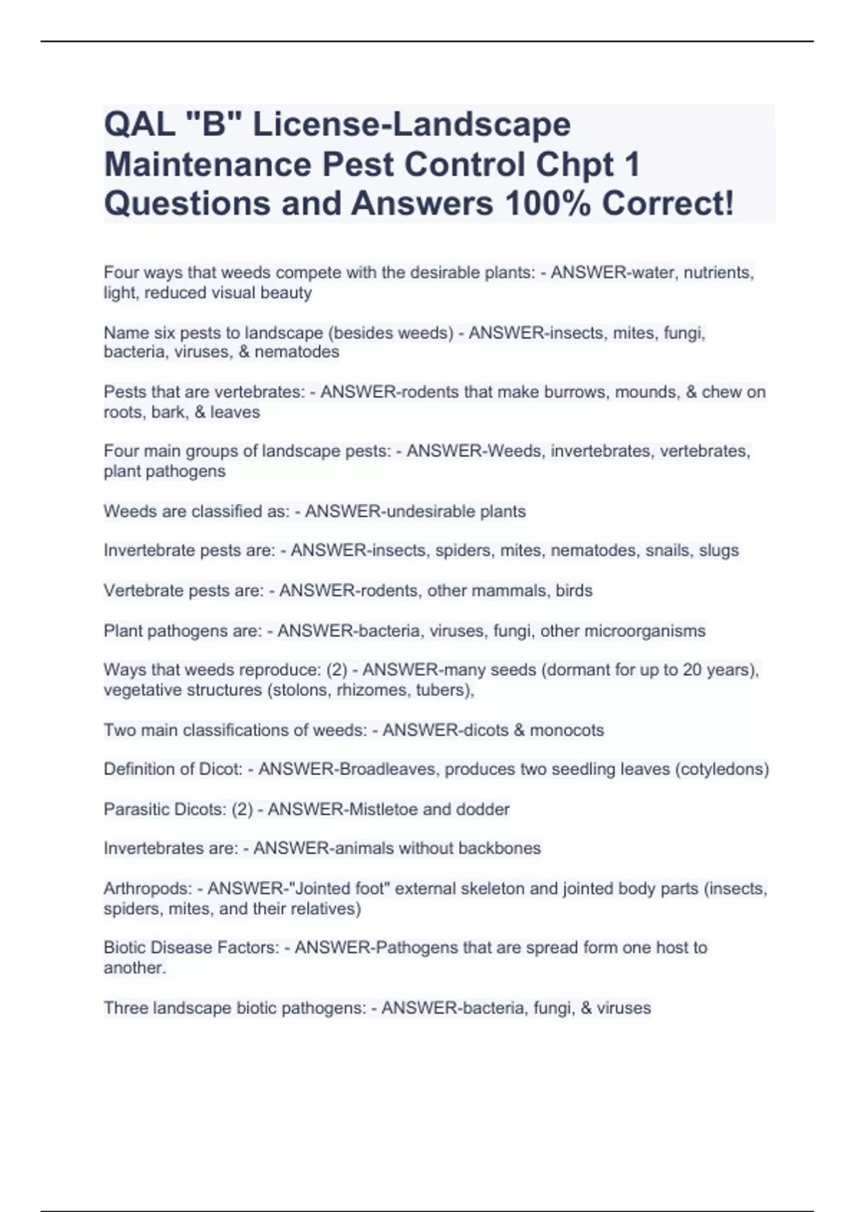 QAL "B" License-Landscape Maintenance Pest Control Chpt 1 Questions and Answers 100% Correct!