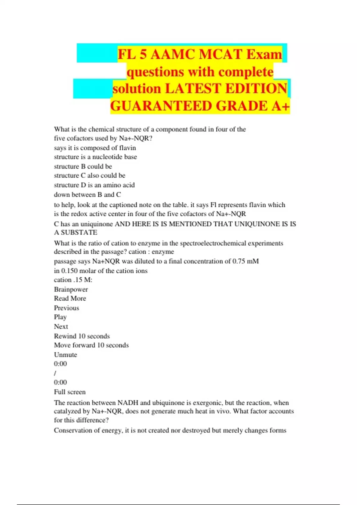 FL 5 AAMC MCAT Exam questions with complete solution LATEST EDITION GUARANTEED GRADE A+