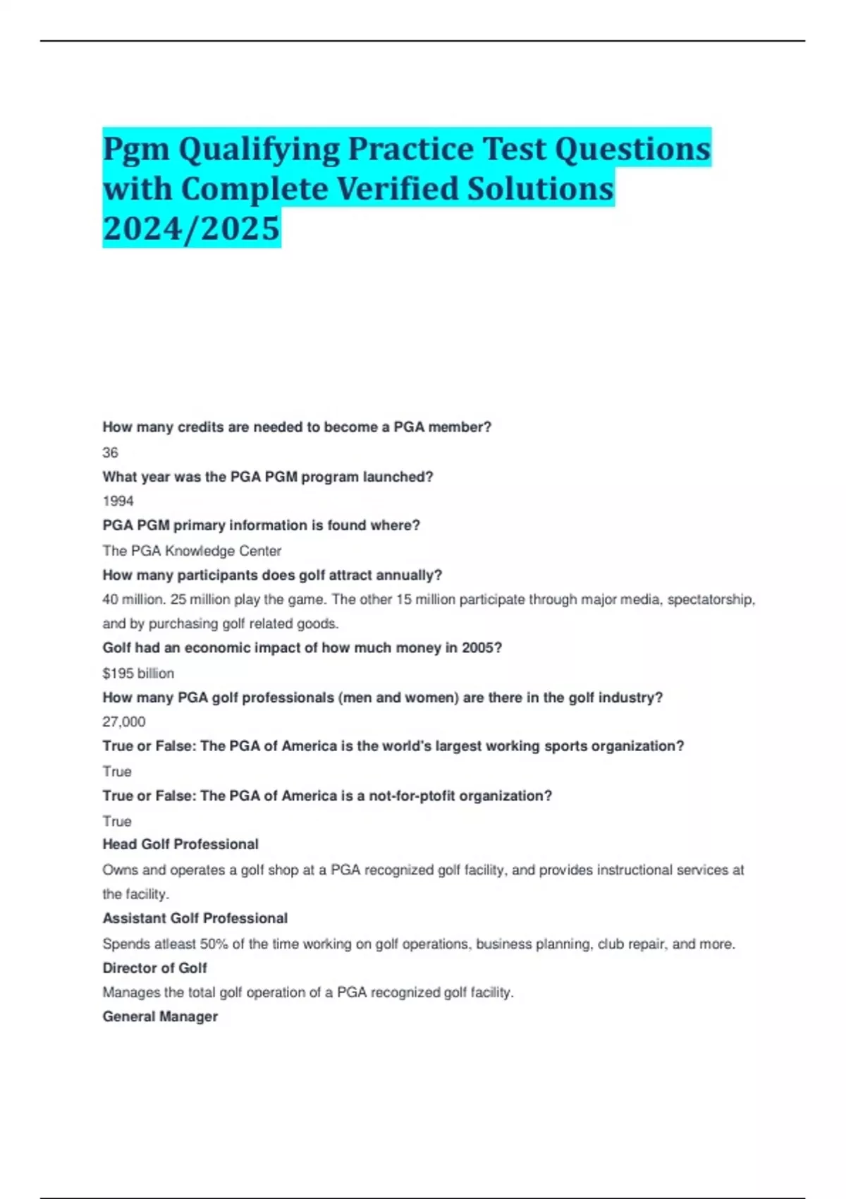 Pgm Qualifying Practice Test Questions with Complete Verified Solutions 2024/2025