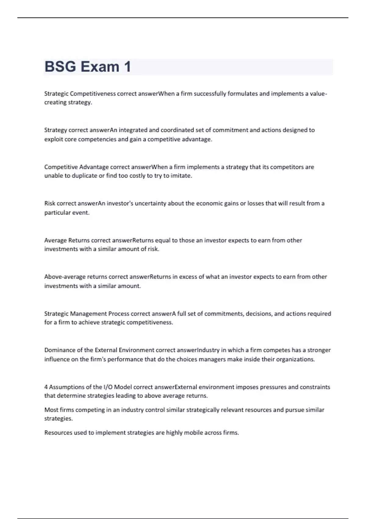 bsg exam 1 questions with 100 correct answers v