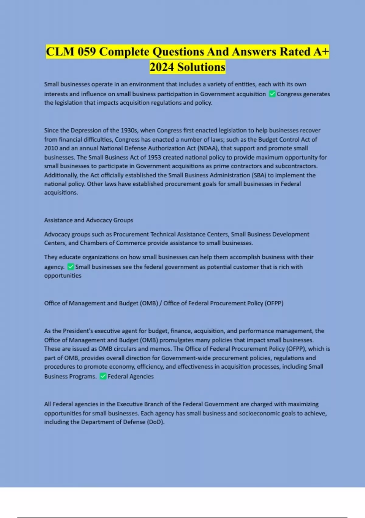 CLM 059 Complete Questions And Answers Rated A+ 2024 Solutions CLM 059 Complete Questions And Answers Rated A+ 2024 Solutions