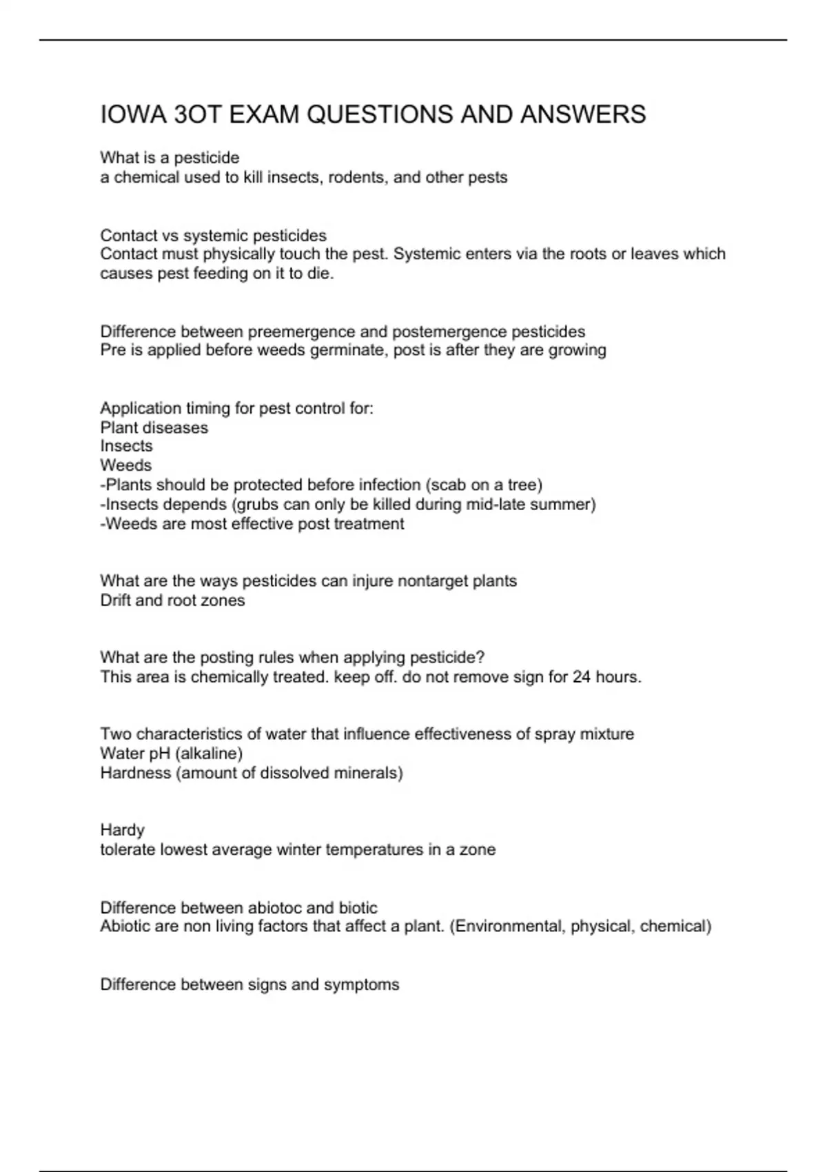 IOWA 3OT EXAM QUESTIONS AND ANSWERS