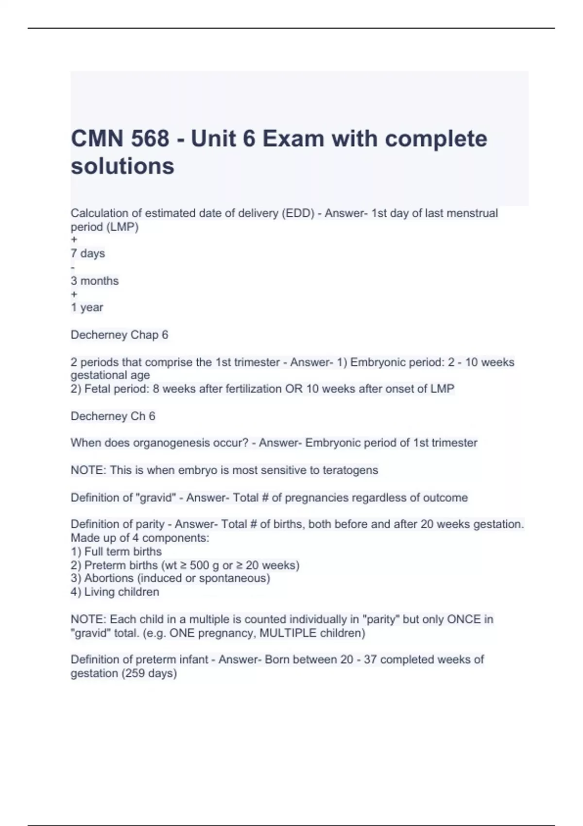 CMN 568 - Unit 6 Exam with complete solutions- Graded A