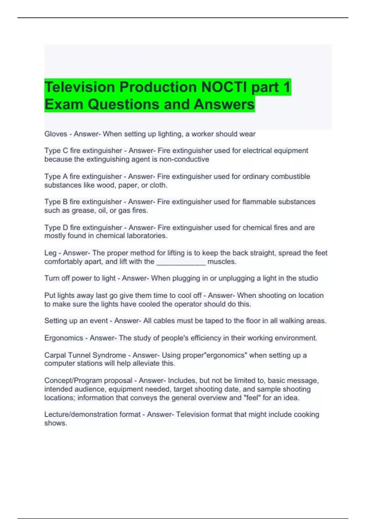 Television Production NOCTI part 1 Exam Questions and Answers 2024