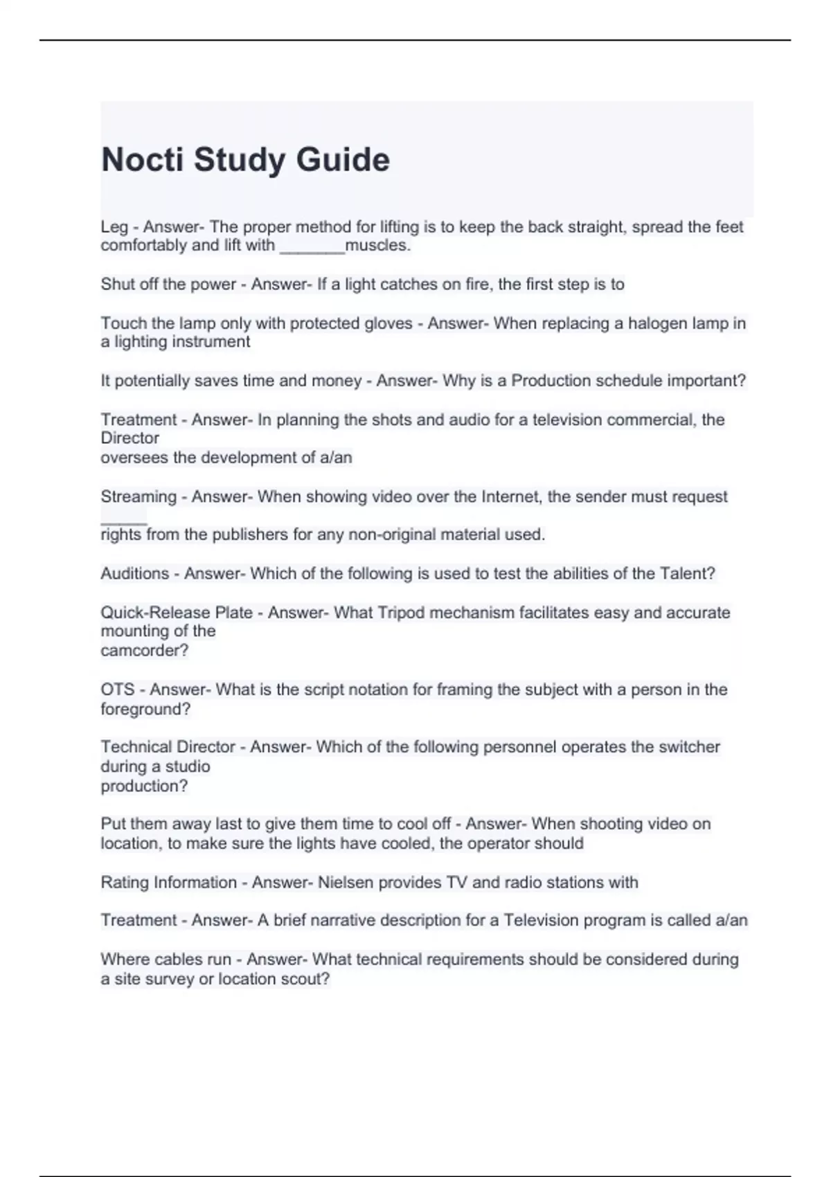 Exam of 7 pages for the course Television Production NOCTI at Television Production NOCTI (Nocti Study Guide)