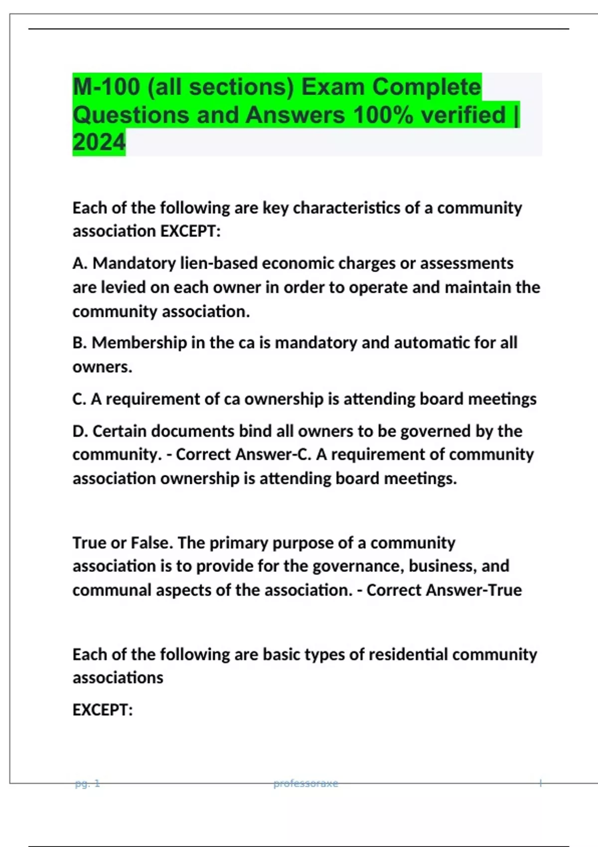 M-100 (all sections) Exam Complete Questions and Answers 100% verified | 2024