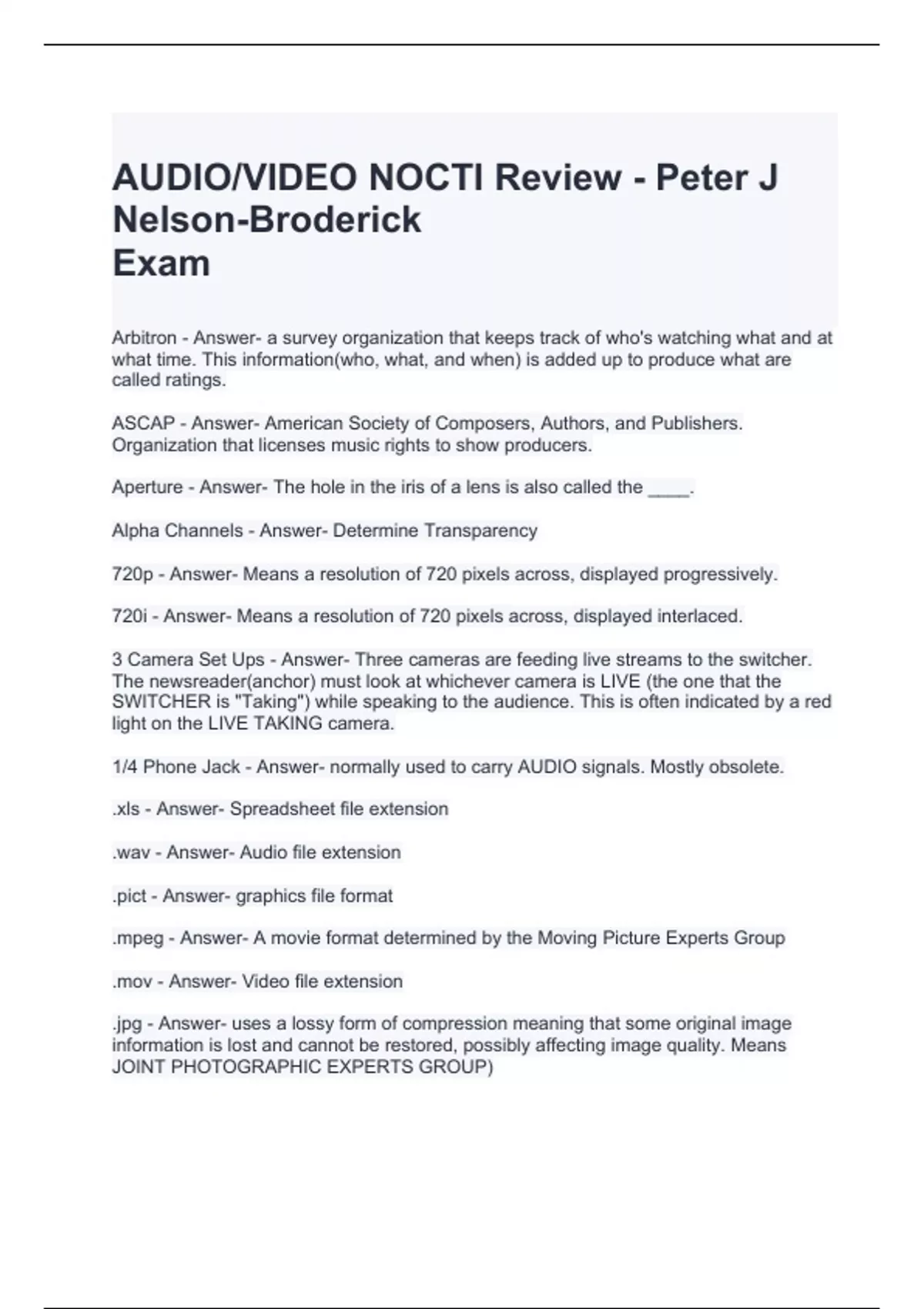 AUDIO-VIDEO NOCTI Review - Peter J Nelson-Broderick Exam Questions and Answers