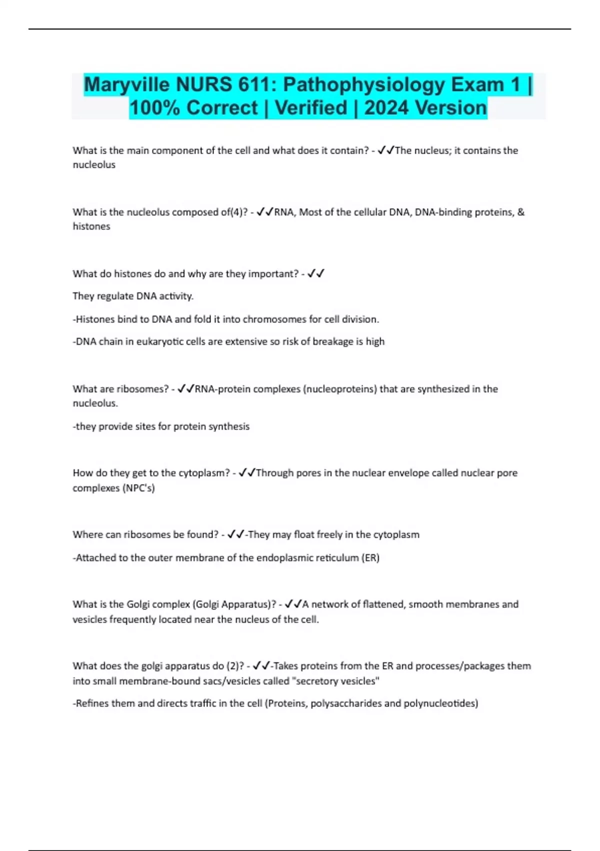 Maryville NURS 611: Pathophysiology Exam 1 | 100% Correct | Verified | 2024 Version