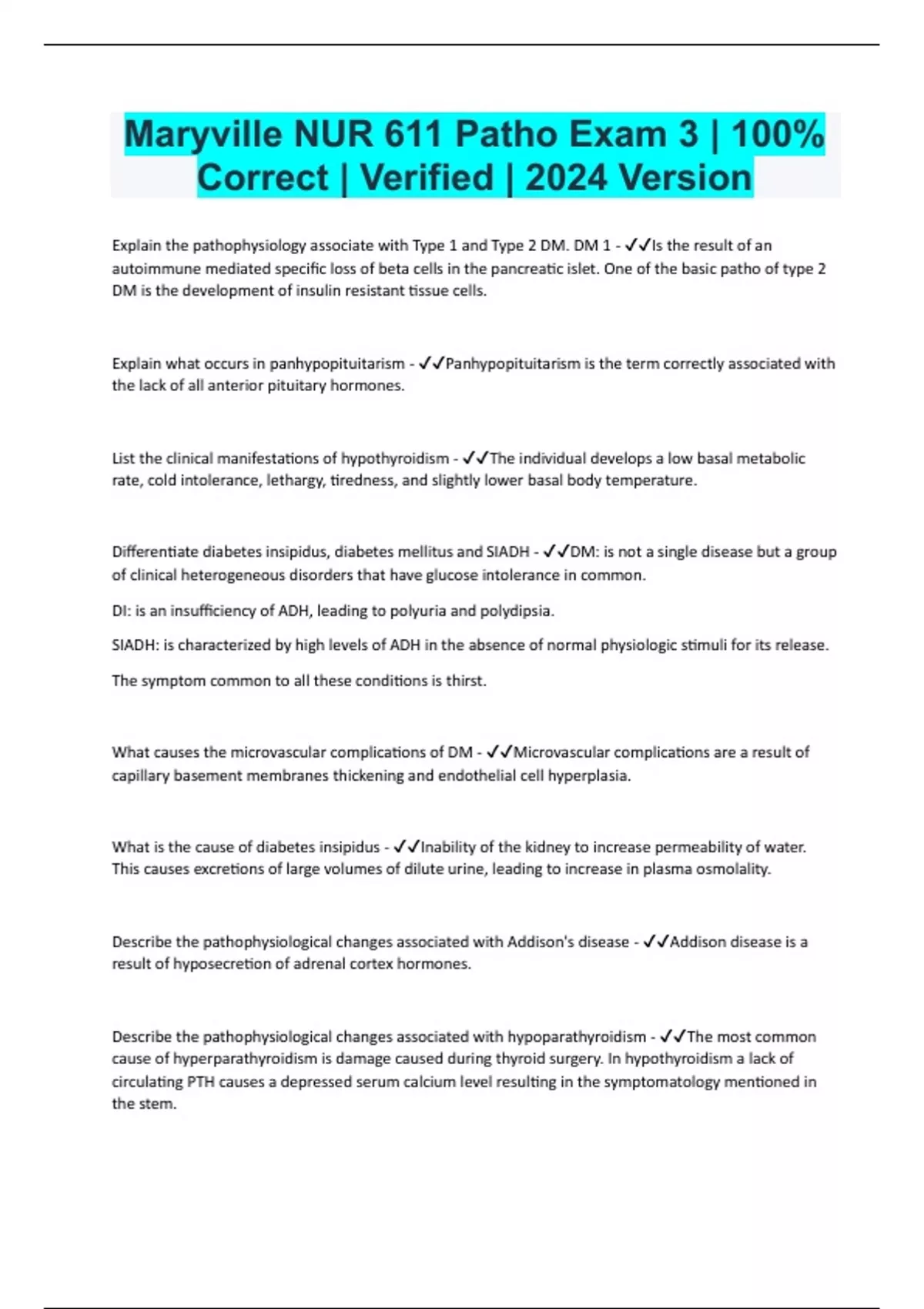 Maryville NUR 611 Patho Exam 3 | 100% Correct | Verified | 2024 Version