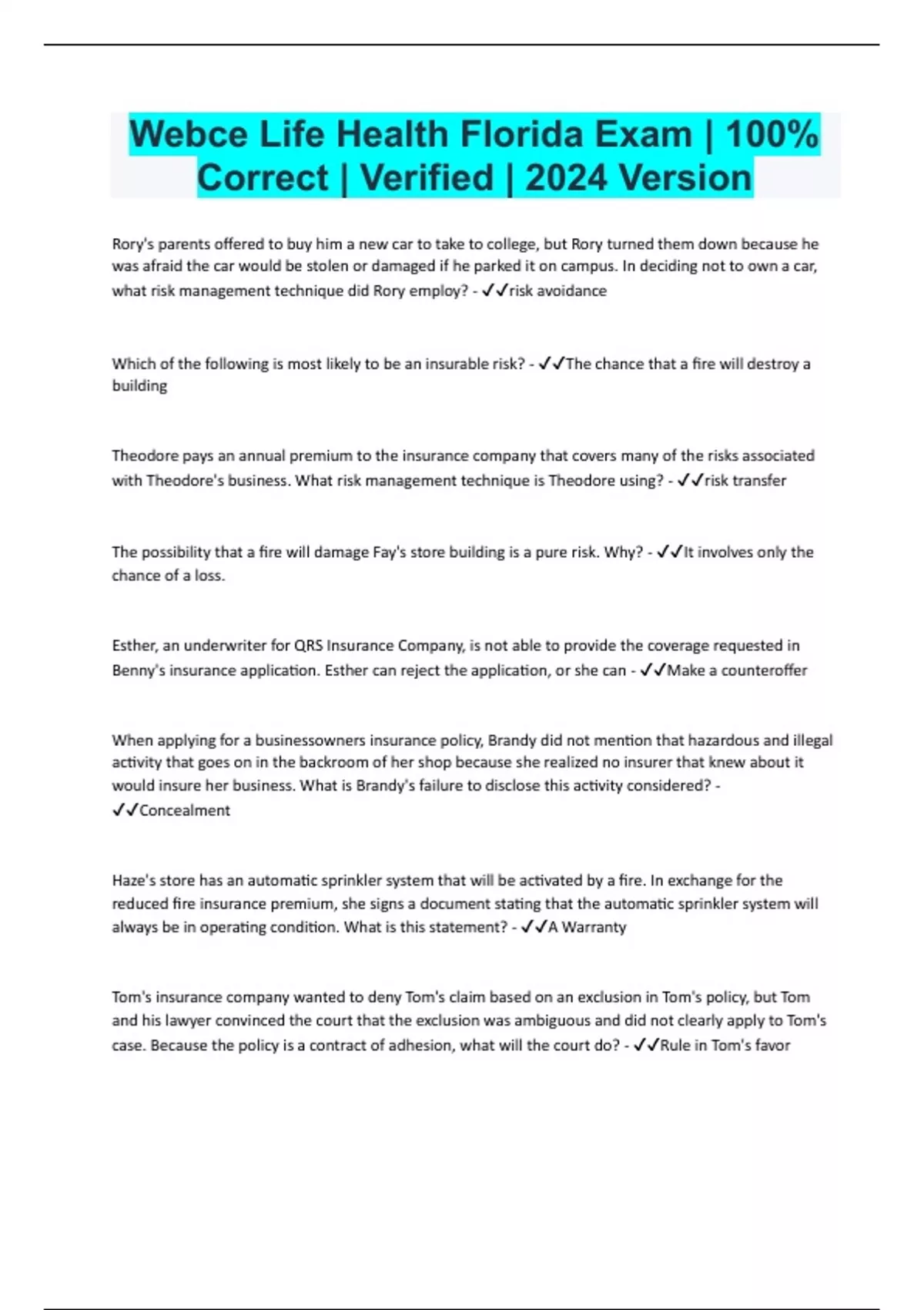 Webce Life Health Florida Exam | 100% Correct | Verified | 2024 Version