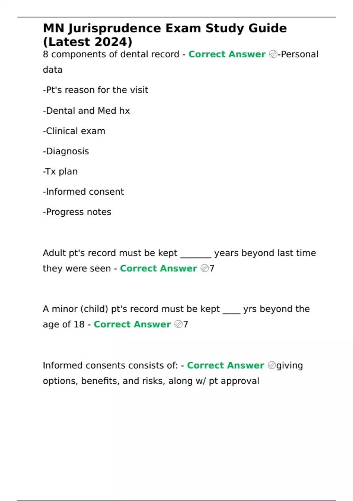 MN Jurisprudence Exam Study Guide (Latest 2024)