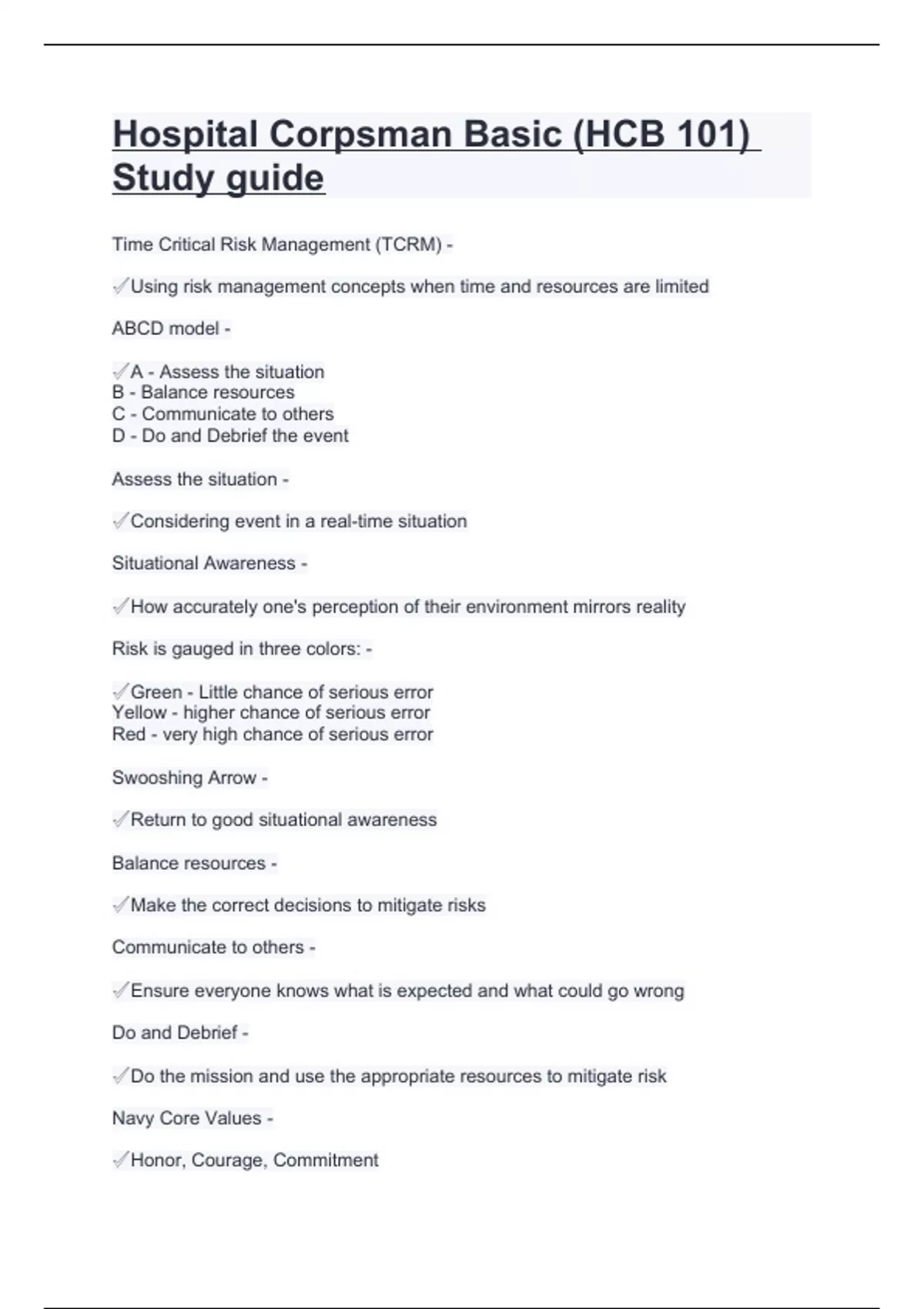 Hospital Corpsman Basic (HCB 101) Study guide