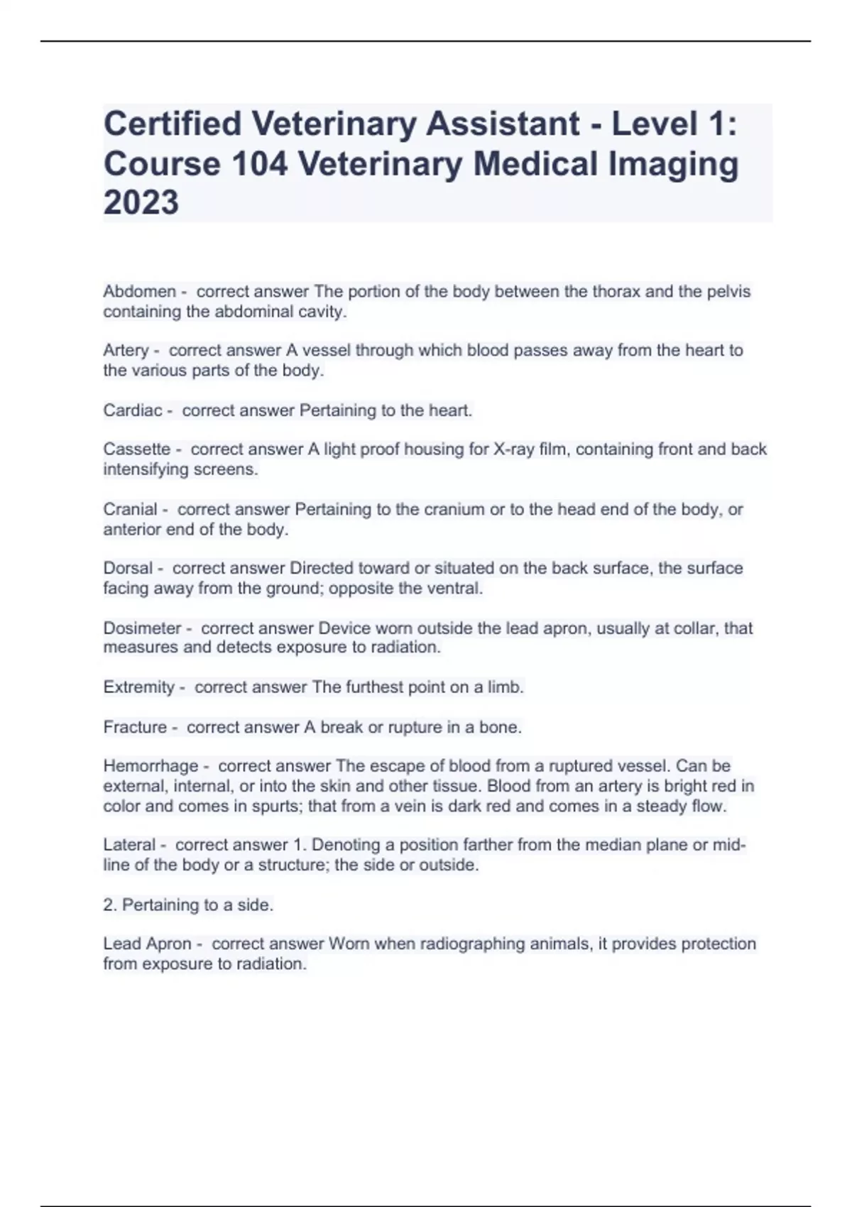 Certified Veterinary Assistant - Level 1 Course 104 Veterinary Medical Imaging 2024