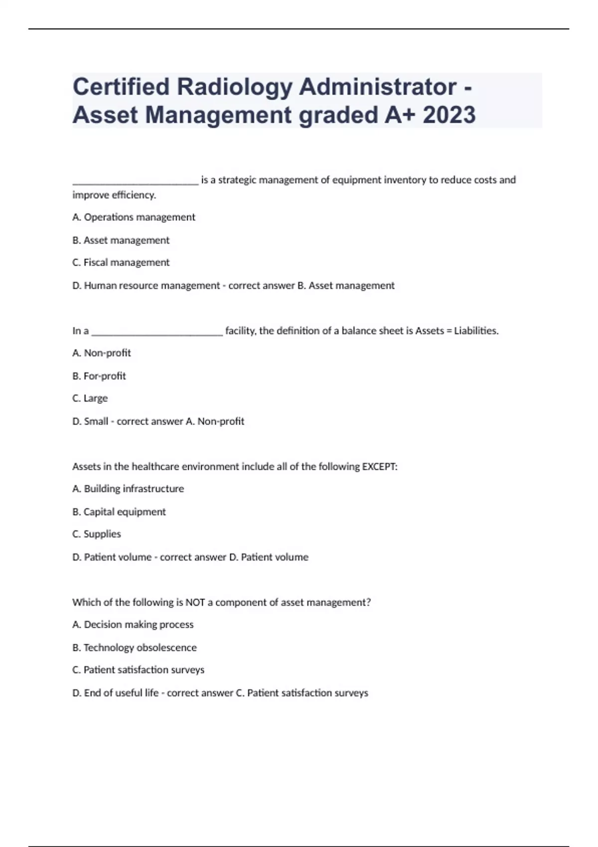 Certified Radiology Administrator - Asset Management graded A+ 2024