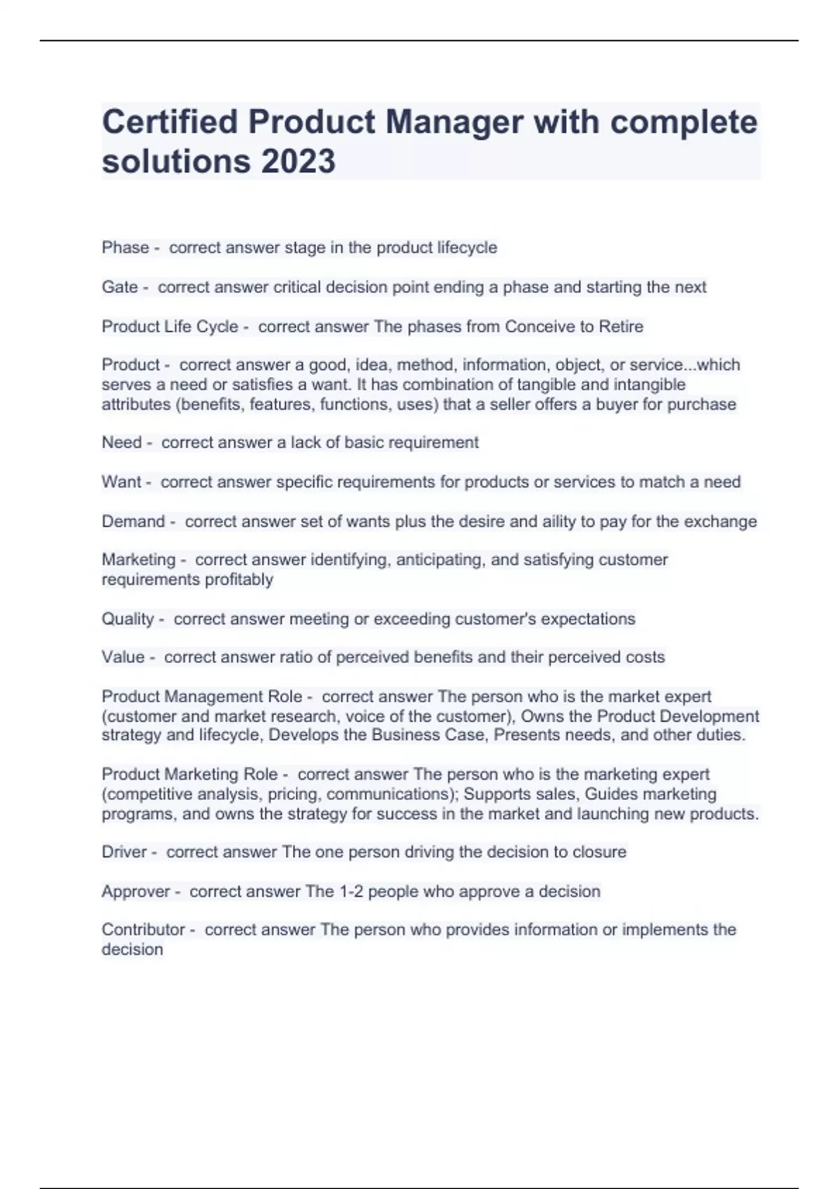 Certified Product Manager with complete solutions 2024